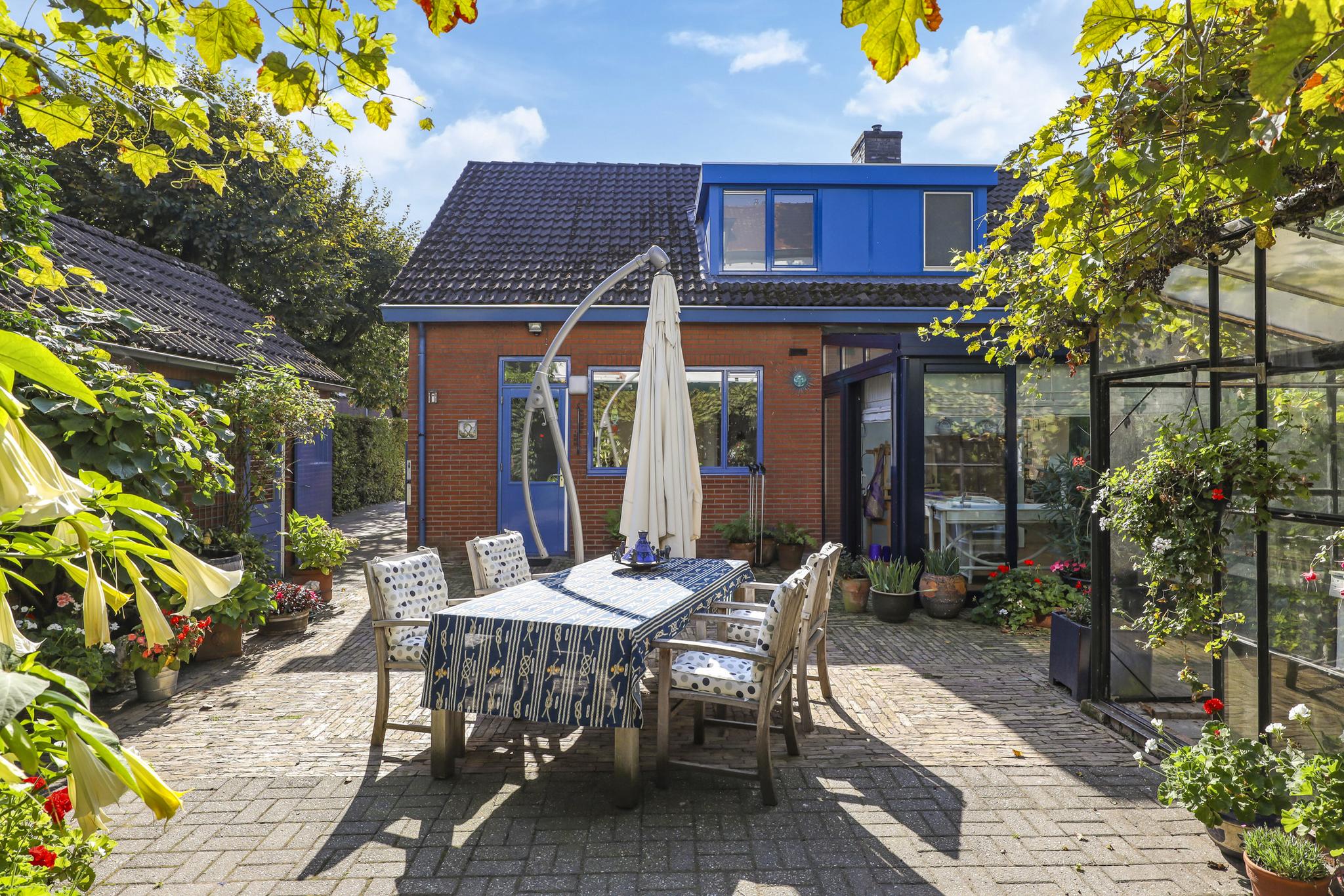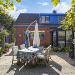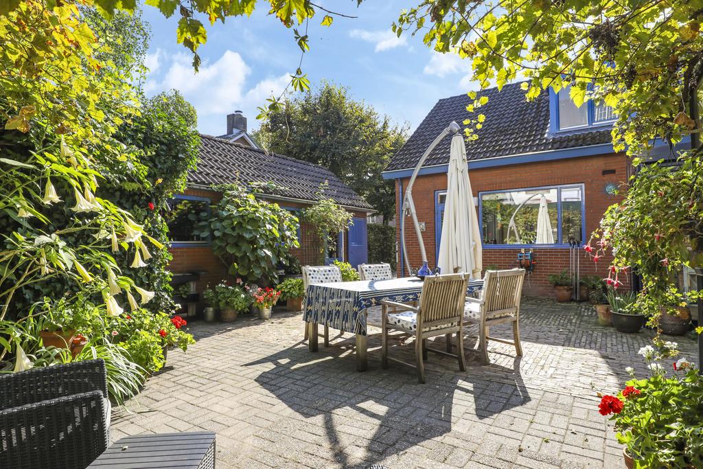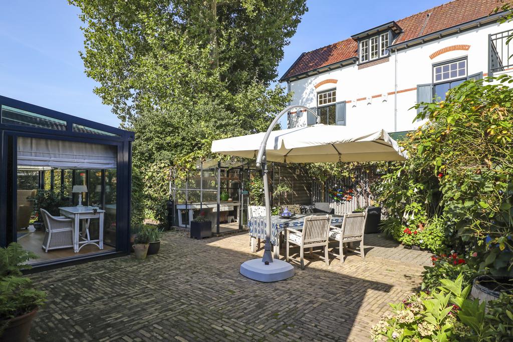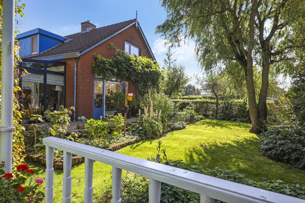 Deze woning staat op een aantrekkelijk perceel die relatief veel privacy te bieden heeft. Dit komt voornamelijk door alle (hoge) hagen, struiken en bomen die de tuin een groen en natuurrijk karakter geven. Het voelt bijna alsof je door een park loopt. Elke hoek heeft wel weer een eigen beleving en bezonning. Het grote terras is aan de achterzijde gelegen en grenst aan zowel de keuken als de serre. Hier kun je een grote tuinset met parasol kwijt. Ook aan de voorzijde voor het raam van de woonkamer kun je een lekker zitje creëren. Je zit hier dan voor een deel onder het overstek van de dakconstructie.