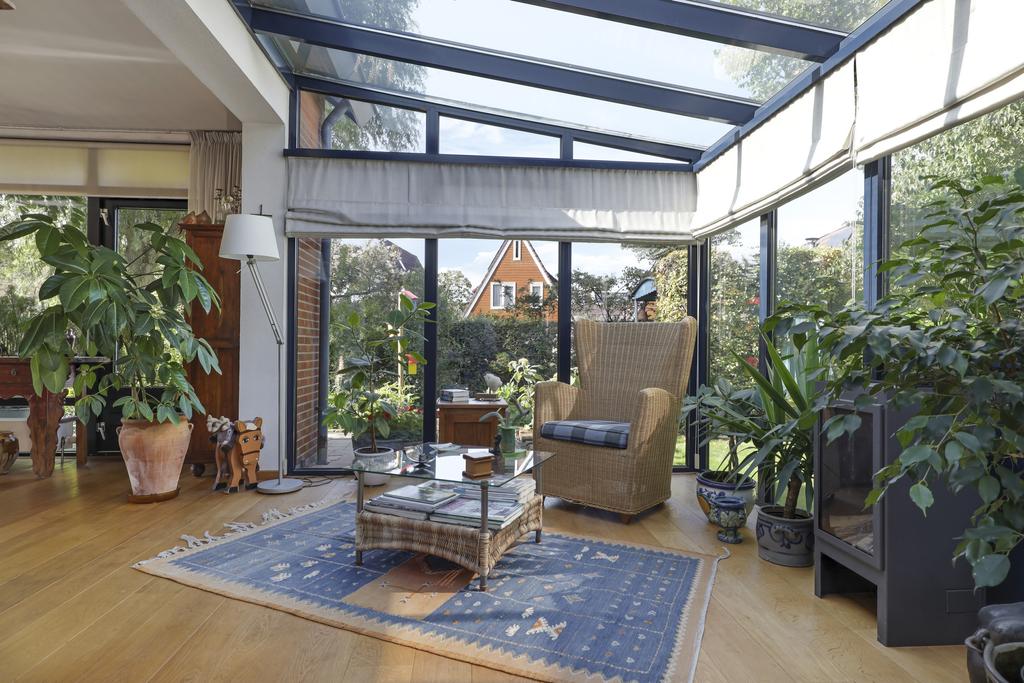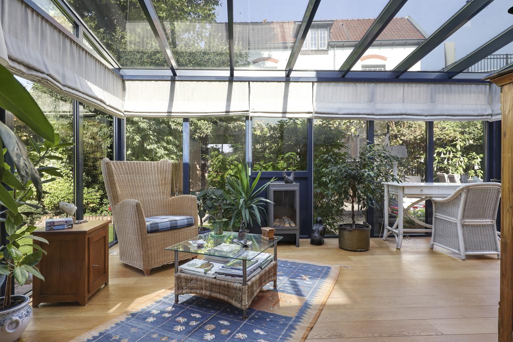 Aangebouwde serrekamer met gashaard en brede schuifpui naar buitenterras