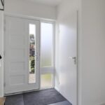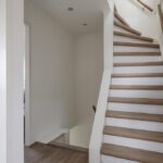 Bij deze woning is het altijd prettig komen in de ruime hal. Vanwege de uitzonderlijke breedtemaat van de woning is de hal ruimer dan gemiddeld. Overdag is het nooit donker in de hal vanwege het glas van de nieuwe voordeurpui. Je komt hier binnen en je ziet direct dat er aandacht is besteed aan de afwerking. De trap heeft recent een traprenovatie ondergaan waardoor deze er helemaal strak uit ziet. De prettige indeling bestaat uit de meterkast, diep trap/voorraadkast, het toilet en de trapopgang. Het toilet is modern afgewerkt met een zwevend wandcloset, een hoekfonteintje en neutraal tegelwerk.