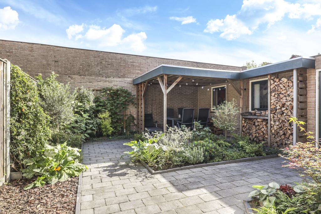 Bij een leuke gezinswoning hoort ook een aantrekkelijke tuin. Opvallend aan deze tuin is de vrije ligging waardoor je bijna 100% privacy hebt. Achter de woning is namelijk geen directe hoogbouw gelegen. De tuin is sfeervol aangekleed met een terras en diverse planten. Achterin de tuin is een terrasoverkapping gemaakt van meer dan 10m2 groot waar je prima een fijne loungeset onder kunt plaatsen. Naast de veranda is een overkapping voor haardhout aanwezig. Vanuit de tuin is er, middels een zijdeur, toegang tot de garage. De tuin is omsloten en heeft een achterom (poort) tussen de woning en de garage.