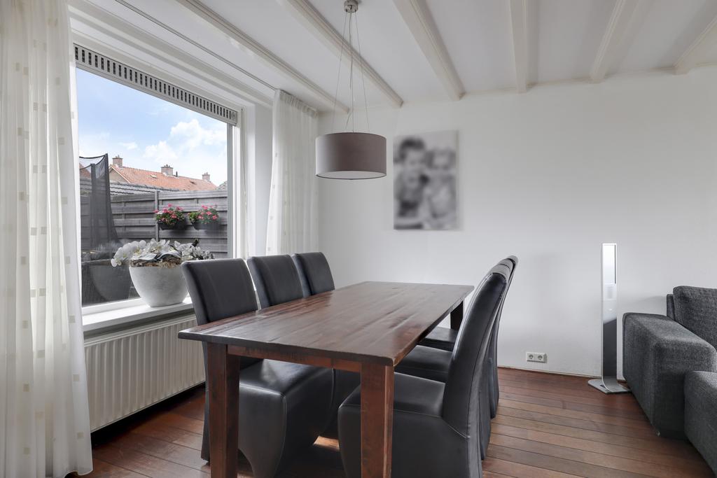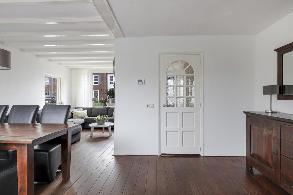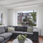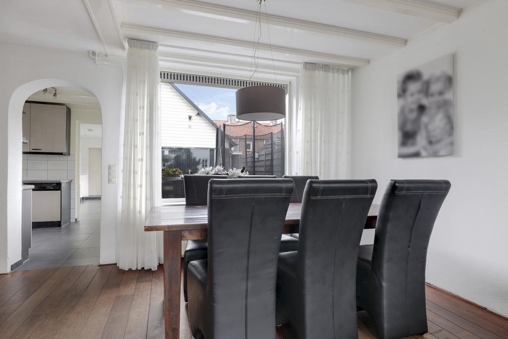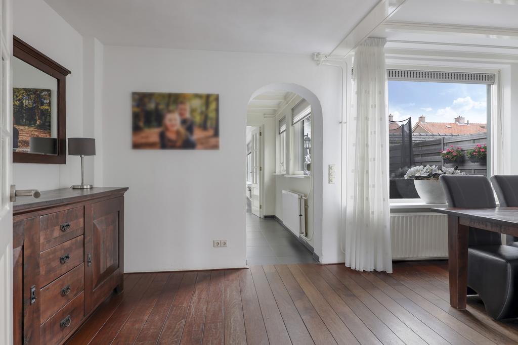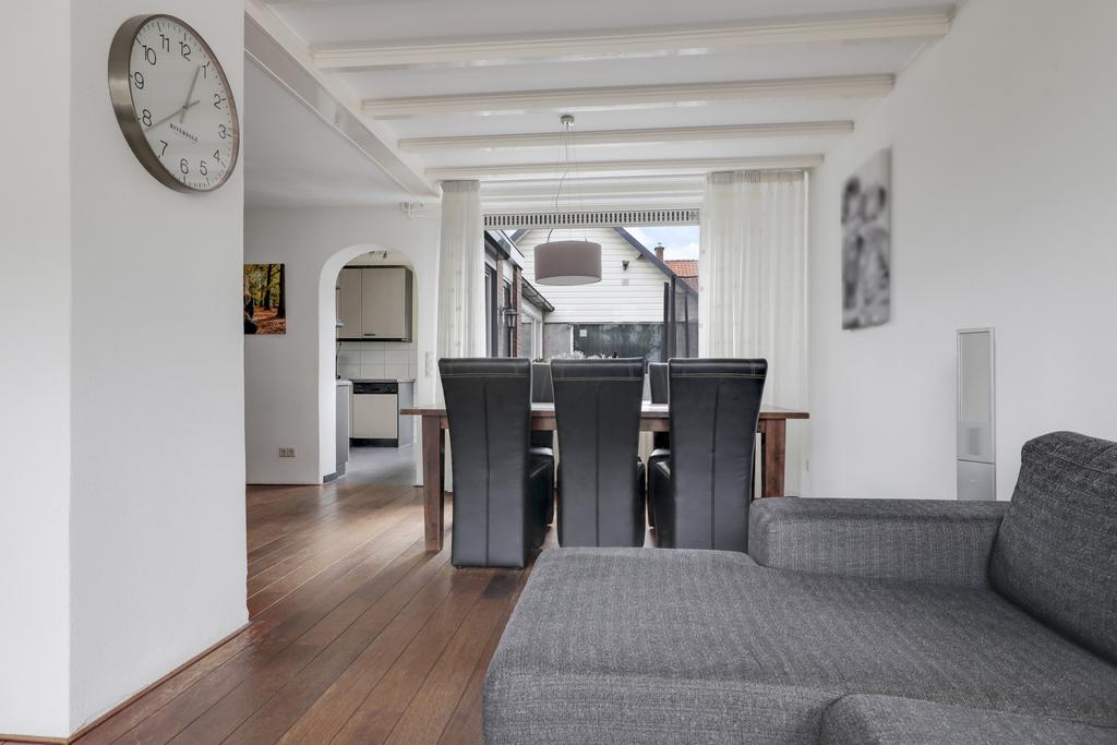 Bij deze woning hoort een ruime L-vormige woonkamer. Deze indeling zorgt ervoor dat er gespeeld kan worden met de inrichting, de eethoek en zithoek kunnen eenvoudig gewisseld worden waardoor de indeling niet standaard blijft. Grote ramen in de voor- zij- en achtergevel zorgen voor veel lichtinval in de woonkamer. De straat aan de voorzijde is recent vernieuwd waardoor er parkeergelegenheid en een buffer naar de straat toe is ontstaan.