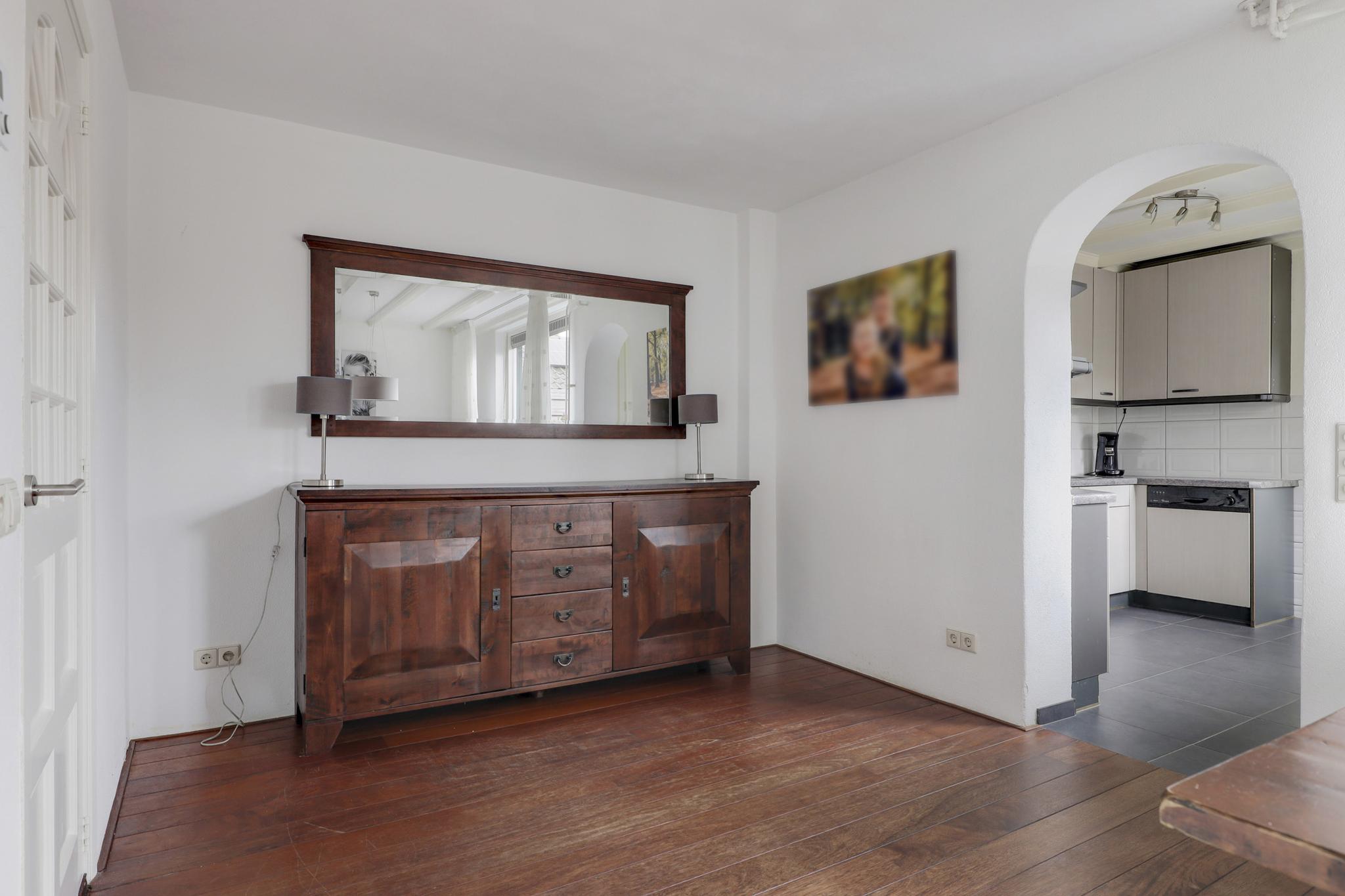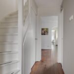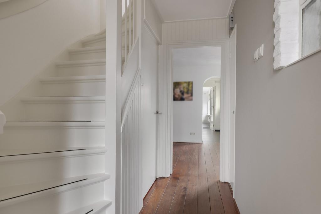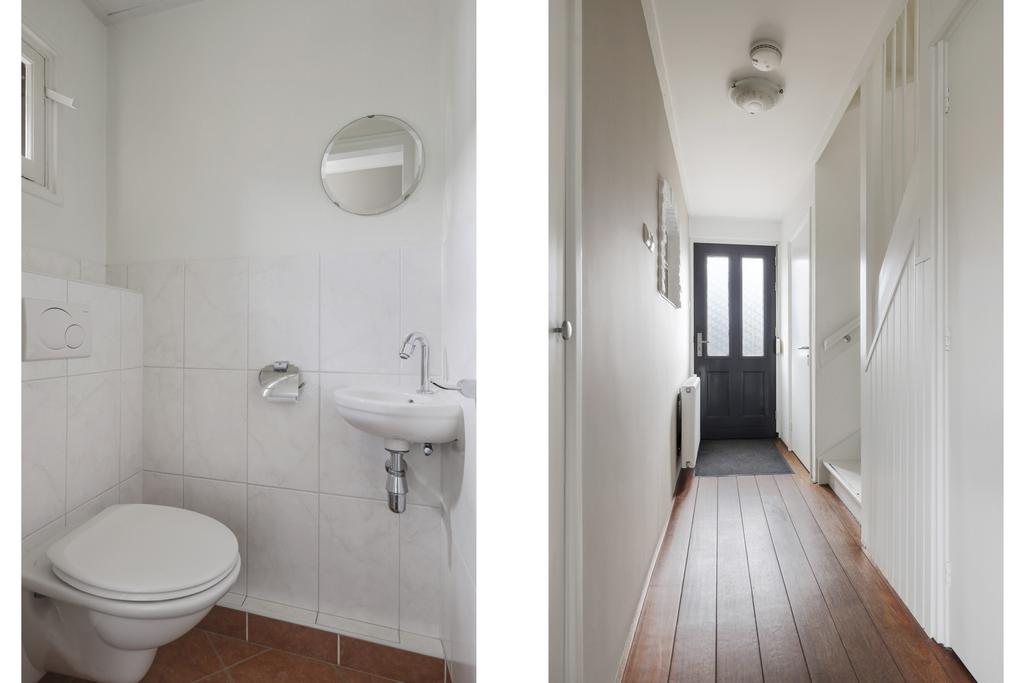 In de hal is, naast het toilet en de meterkast, een verdiepte trapkast aanwezig wat veel praktische opbergruimte biedt.