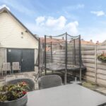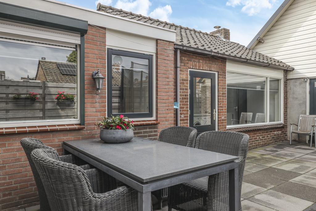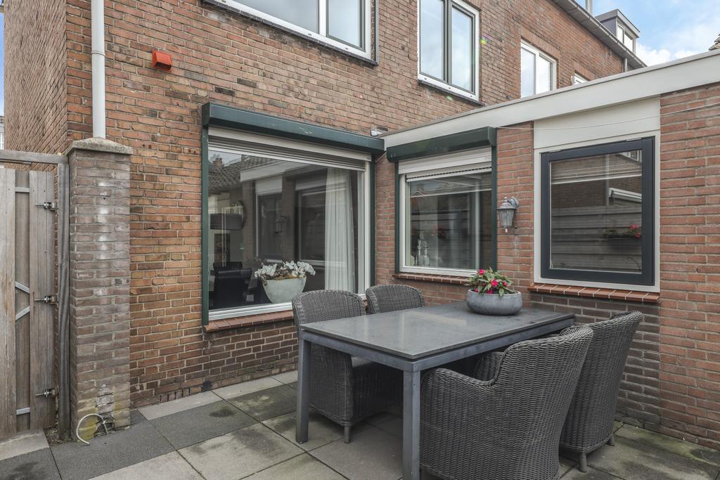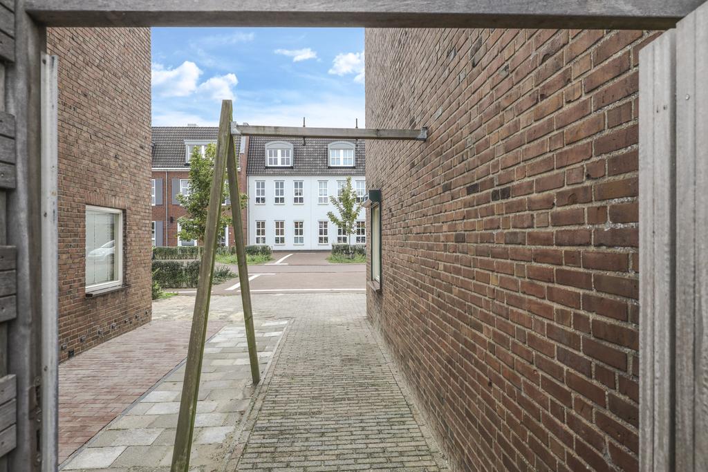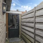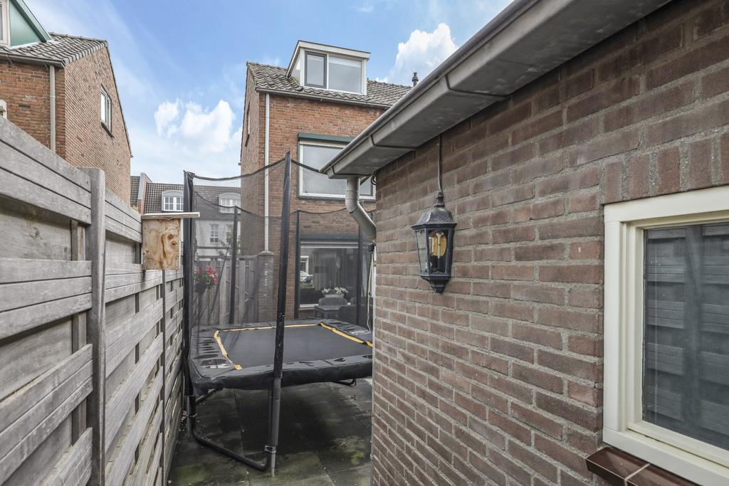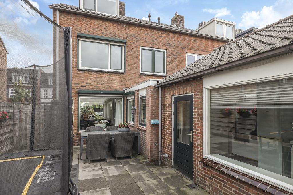 Op het midden van het perceel ligt de achtertuin. Deze is door de extra bebouwing redelijk besloten waardoor je hier van weinig inkijk geniet. De tuin is onderhoudsvriendelijk aangelegd met een groot terras. Je kan hier eenvoudig meerdere tuinsets kwijt. De tuin is middels een poort afgesloten naar de oprit toe. Door de ligging op het westen geniet je hier van veel middag- en avondzon. Naast de garage/multifunctionele ruimte is nog een houten fietsenberging te vinden.