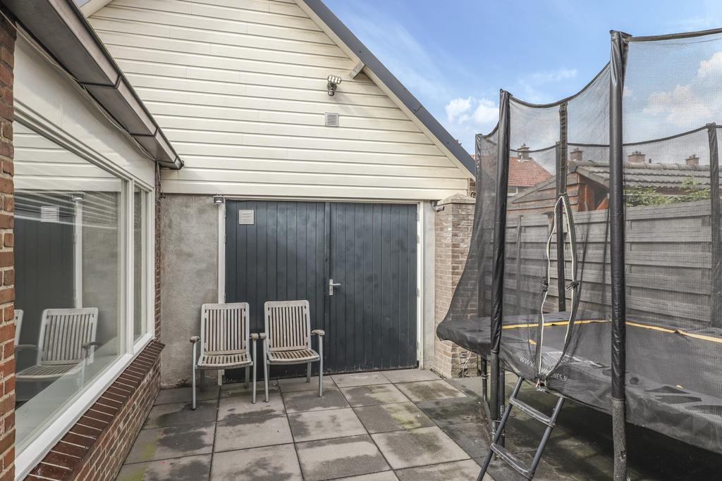 Achter op het perceel is een extra multifunctionele ruimte te vinden. Dit is een grote ruimte welke is gebouwd als een garage, echter is deze niet toegankelijk voor een auto. Openslaande deuren geven toegang vanuit de achtertuin, tussen deze deuren en de ruimte is een berging geplaatst, welke praktisch is voor bijvoorbeeld het tuingereedschap. Ook is deze ruimte vanuit de bijkeuken bereikbaar. Door de zadelkap heeft deze ruimte een hoge nok waardoor het nog ruimtelijker aanvoelt. In de nok tref je extra opbergruimte aan. Zoek je een plek voor een studie/werkruimte, een sportruimte of een speelkamer voor de kinderen? Dan ben je hier zeker aan het juiste adres.