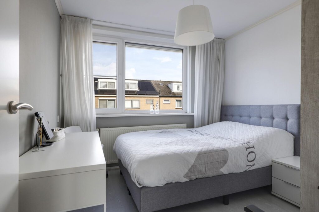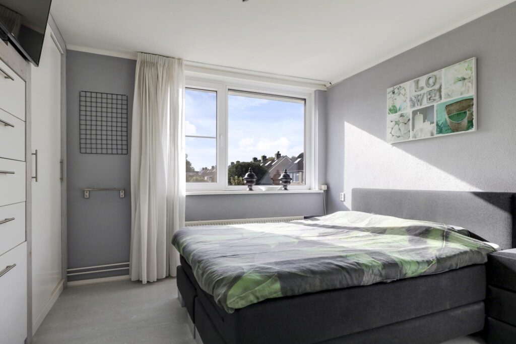 De slaapkamers zijn allen goed bemeten en zijn respectievelijk 13m2, 9m2 en 8m2 groot. De grootste kamer voelt aan als een masterbedroom waarbij er een maatwerk kastenwand (garderobekast met lades) is gemaakt. Desondanks kun je er nog steeds een groot 2-persoons bed kwijt. Twee slaapkamers en ook op de overloop zijn extra inbouwkasten te vinden. Net als elders in de woning zijn ook op de slaapkamer de kozijnen vervangen door kunststof en v.v. het draai/kiepsysteem. Hierdoor kun je de kamers optimaal ventileren. Insecten krijgen geen kans vanwege de aanwezigheid van inzethorren. Een ander groot pluspunt zijn de rolluiken (elektrisch bedienbaar) waardoor de kamers 100% te verduisteren zijn.