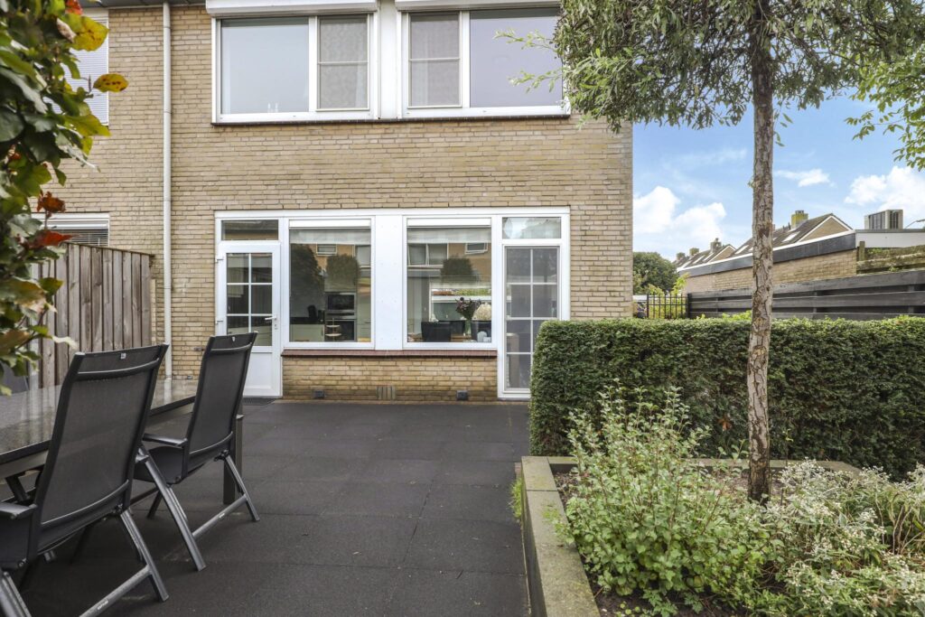 De achtertuin heeft hetzelfde verzorgde karakter en is onder meer aangelegd met verschillende soorten planten en 2 heerlijke terrassen. Het terras achter in de tuin heeft daarbij de meeste zonuren. Zie jij jezelf hier al genieten op een lekkere loungeset?