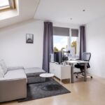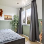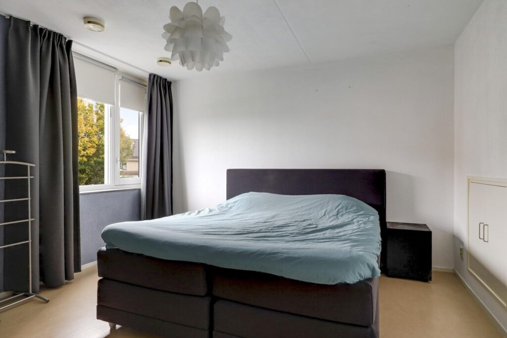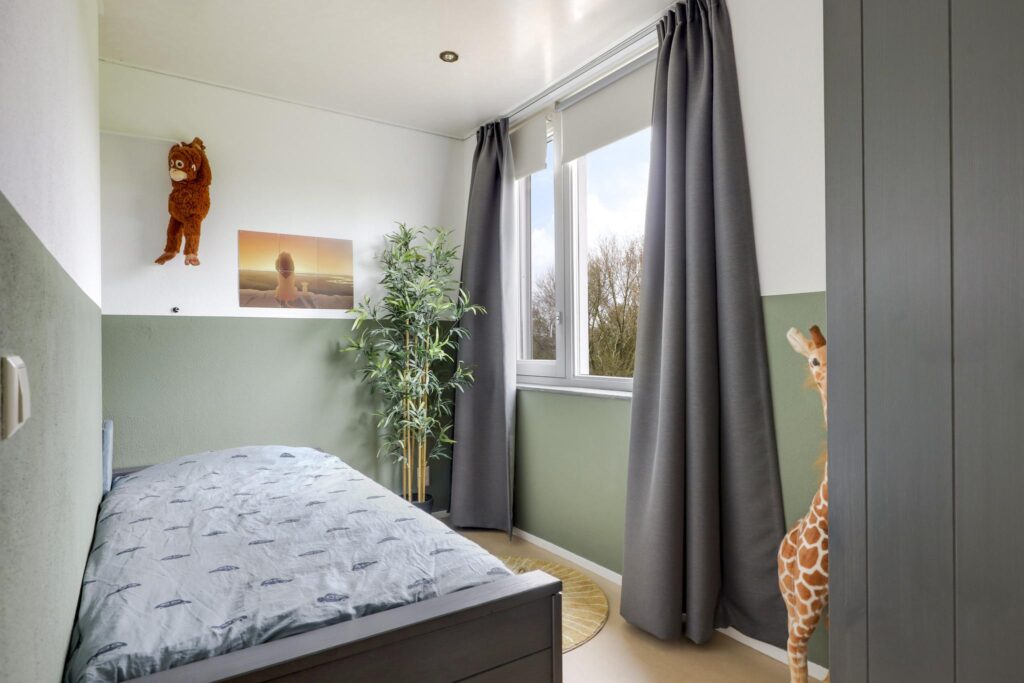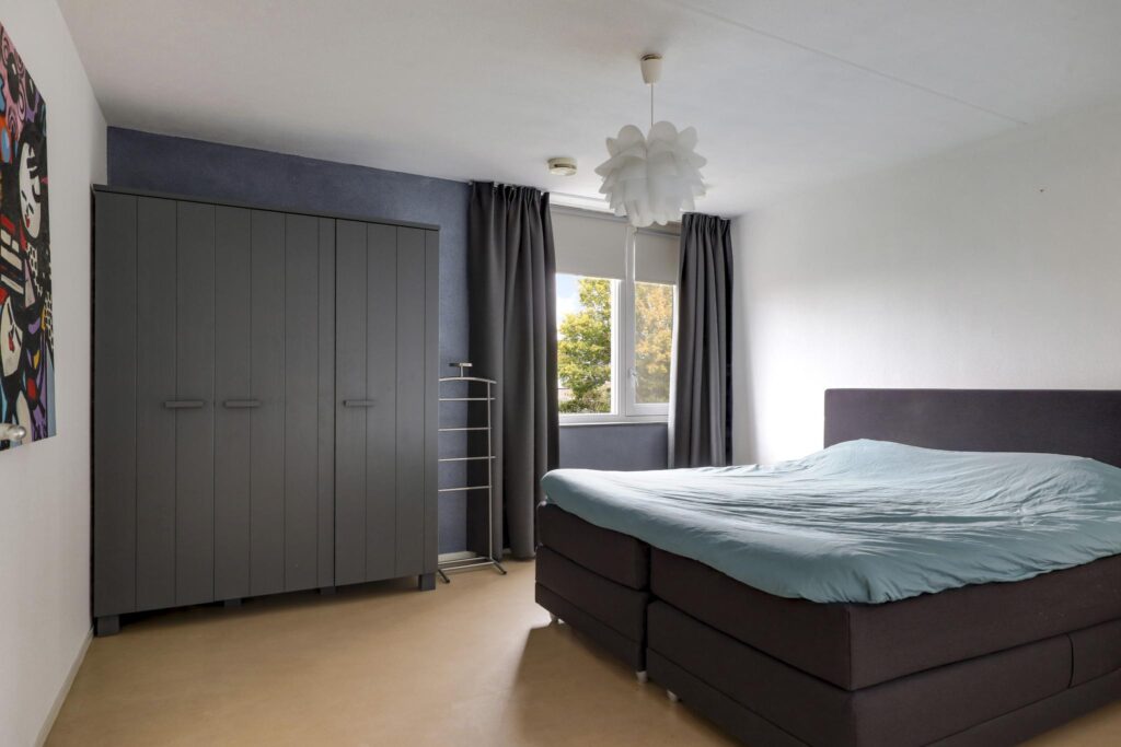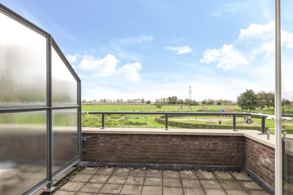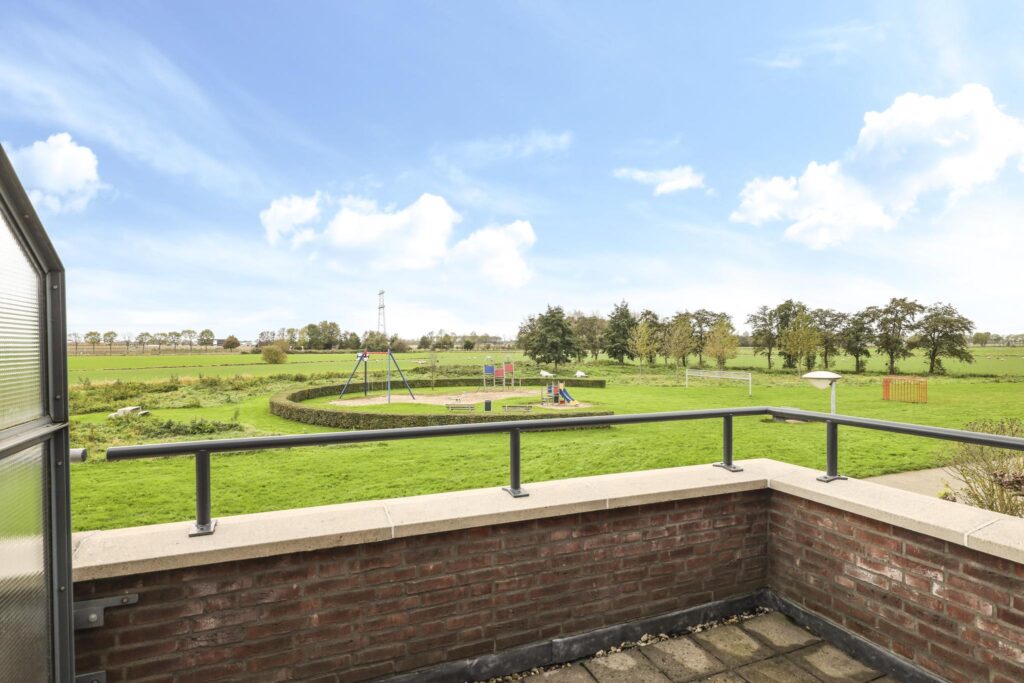 Wanneer je de trap op loopt valt het je op dat dit zeker geen standaard woning. De open vide geeft de woning een luxe uitstraling en een extra dimensie. Opvallend is dat ook de 1e verdieping is voorzien van vloerverwarming. Op zich is dat niet bijzonder bij een woning met een aardwarmtepomp, maar wel noemenswaardig omdat het veel comfort geeft. Bovendien zijn ook hier geen radiatoren te vinden die in de weg zitten bij het inrichten van de slaapkamers. Er zijn 2 volwaardige slaapkamers van respectievelijk 16m² en 15m². De slaapkamer aan de voorzijde heeft toegang tot een balkon van ca. 8m² groot. Vanaf het balkon heb je een panoramisch uitzicht over weilanden. Een heerlijke plek om ’s ochtends je kopje koffie te nuttigen.