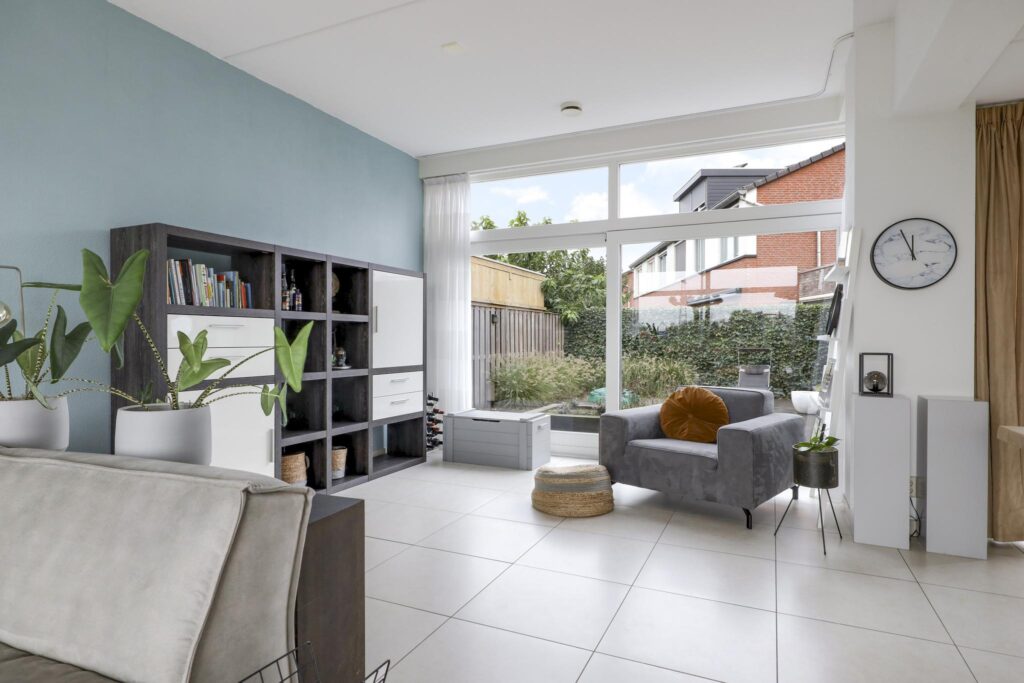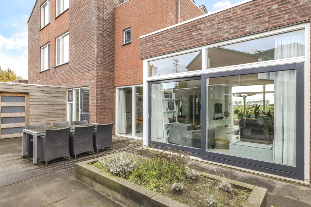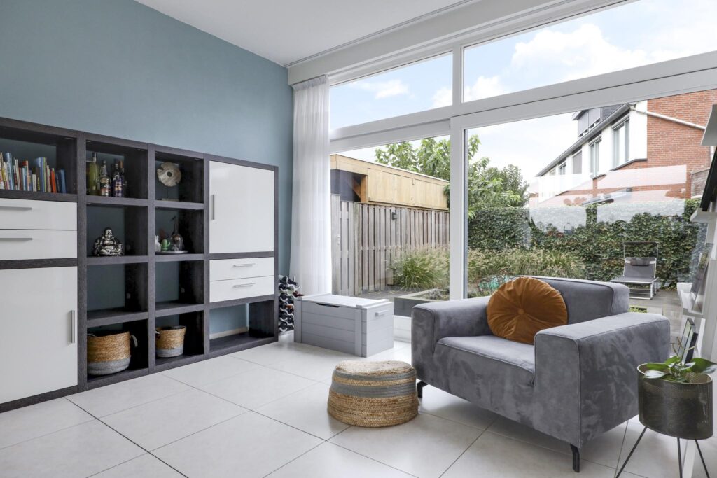 Brede schuifpui in woonkamer naar achtertuin