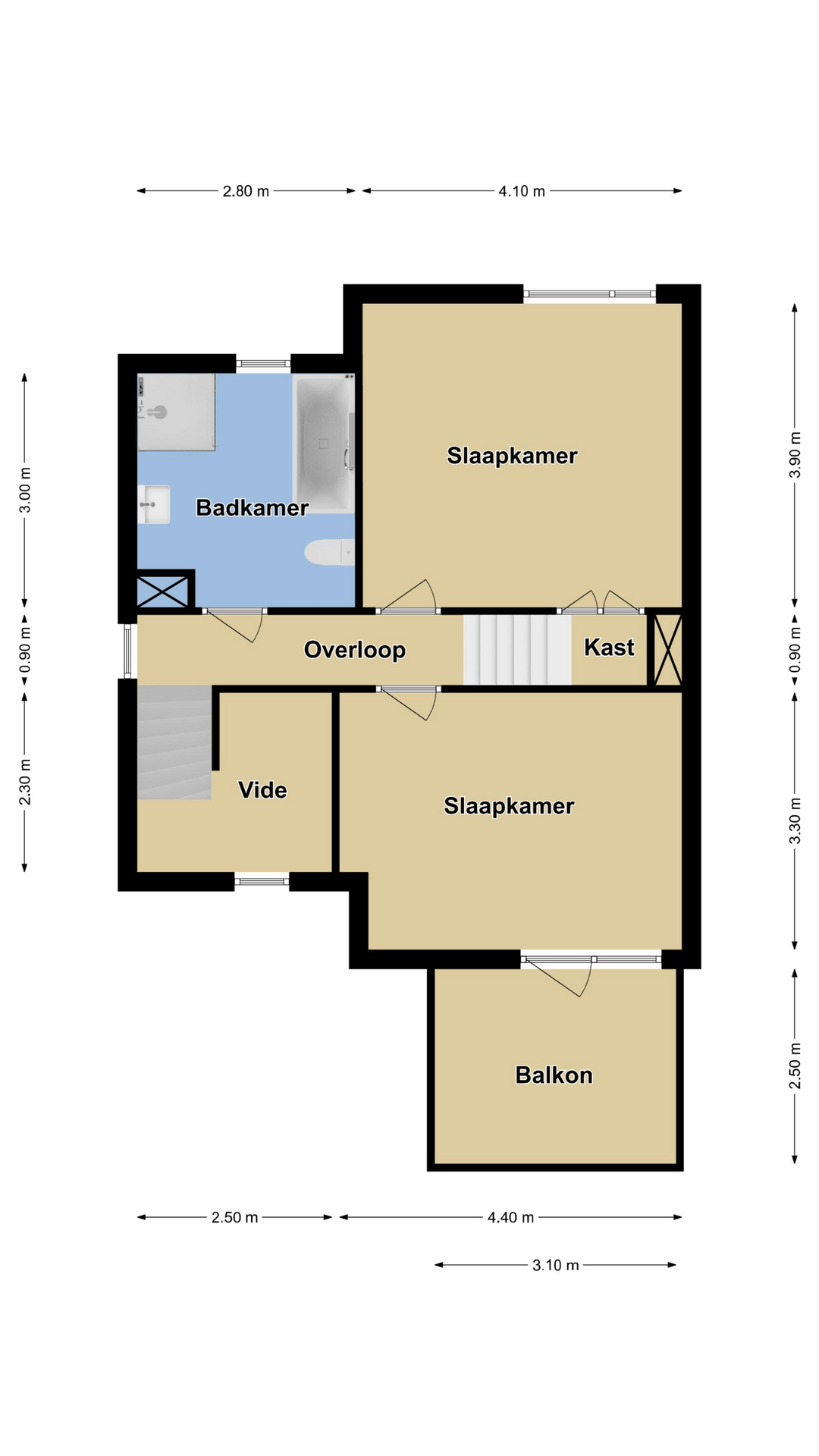 In totaal 4 slaapkamers op de verdiepingen