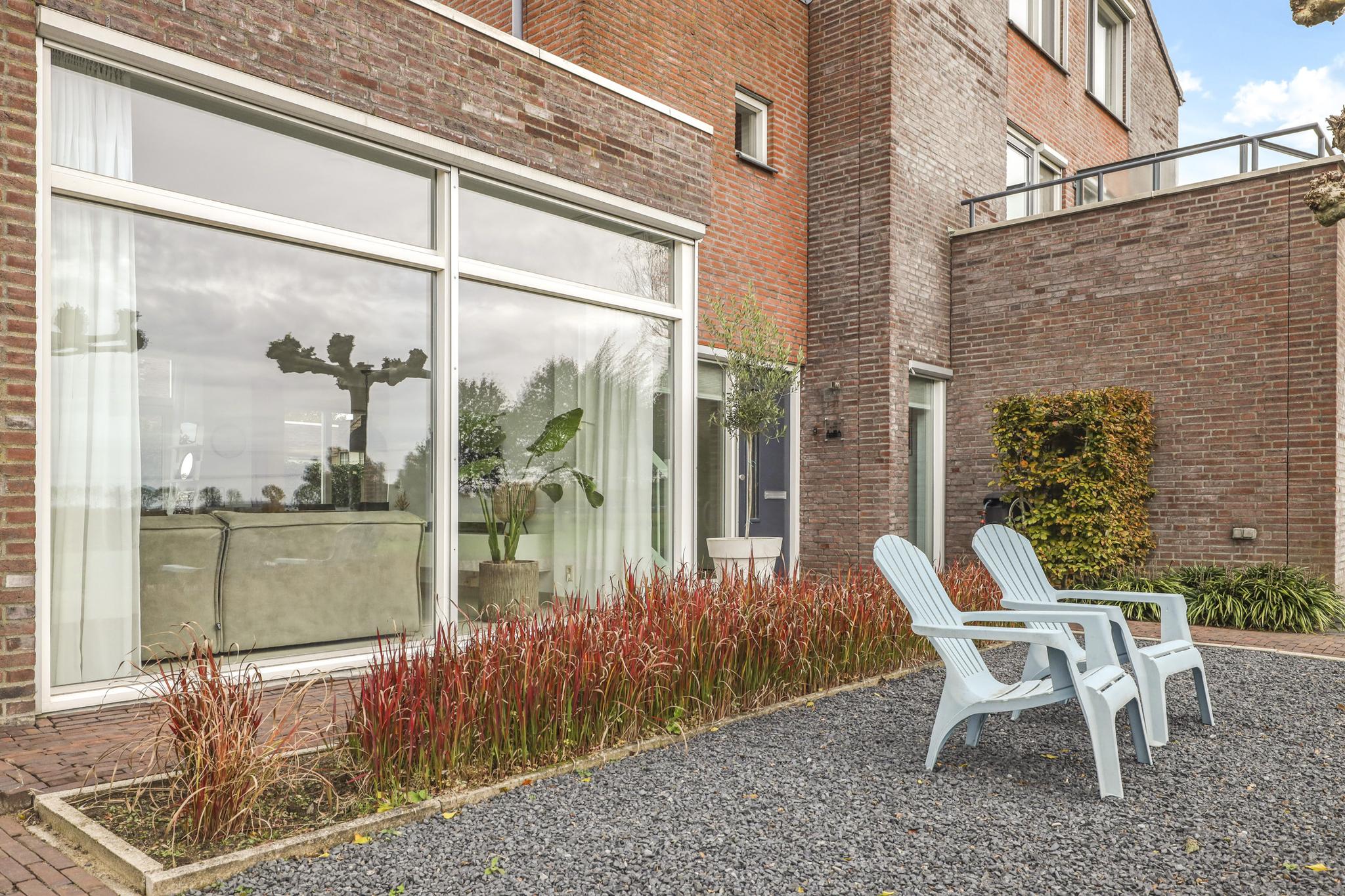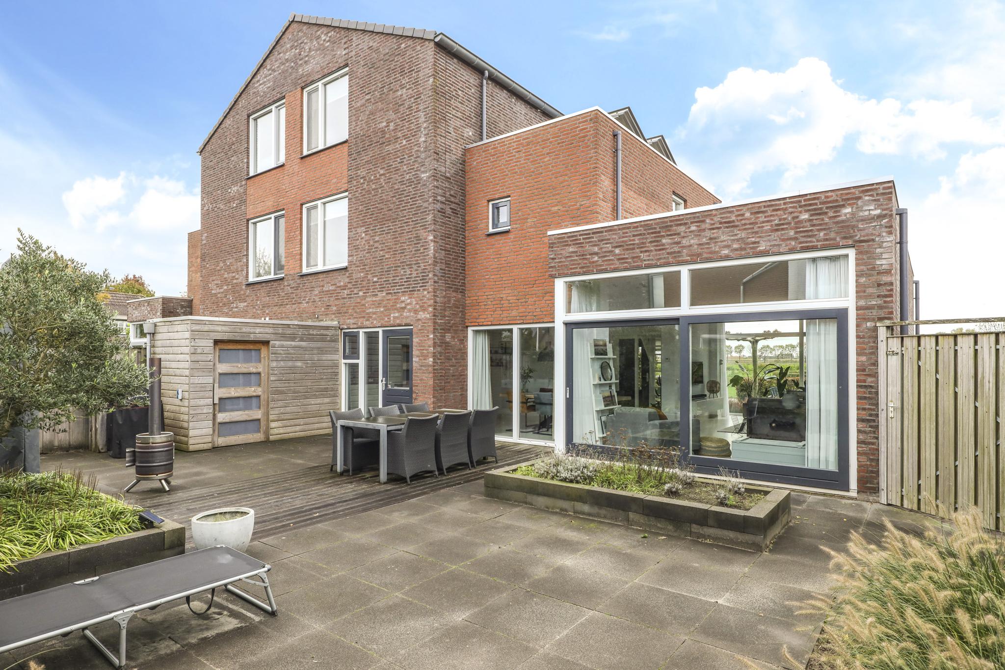 Heerlijk vrij aan de rand van het dorp gelegen, stijlvol ontworpen en instapklare 2-ONDER-1-KAPWONING met o.a. speelse raampartijen, een ruimtelijke indeling, een fijne leefruimte met hoog plafond, een luxe eilandkeuken, op de verdiepingen in totaal 4 slaapkamers waarvan 1 met BALKON met vrij uitzicht alsmede een luxe badkamer met o.a. een ligbad én inloopdouche. De ruimtelijke hal met vide geeft toegang tot de inpandige GARAGE. Een zeer groot pluspunt van deze gasvrije woning is dat het bijzonder duurzaam is met onder meer een aardwarmtepomp, een zonneboiler en WTW-ventilatiesysteem. De woning is volledig geïsoleerd en draagt energielabel A+. De woning heeft dan ook alleen maar vloerverwarming die zowel kan koelen als verwarmen (zelfs op de 2e verdieping). De vloerverwarming is per kamer regelbaar. Verder zijn meerdere ramen voorzien van screens (zonwering).