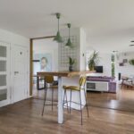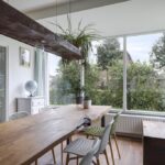 Ook de indeling van de woning is voor een groot deel veranderd waarbij ruimtes bij elkaar zijn gevoegd. Dit zie je met name terug op de begane grond waarbij een deel van de voormalige garage bij de keuken is getrokken. Kortom, de indeling is verrassend te noemen waarbij speelse raampartijen en praktische leefruimtes voor een bijzonder prettige woonsfeer zorgen.