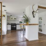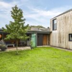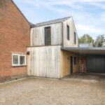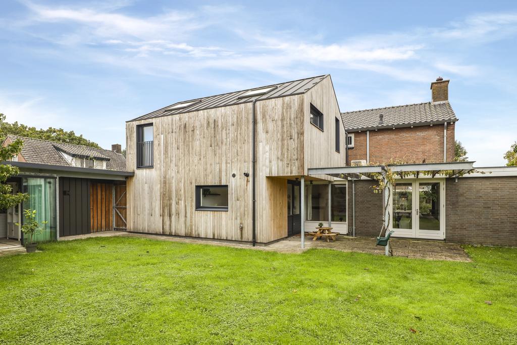 Aan de buitenzijde vallen enkele details meteen op, namelijk de zinken hemelwaterafvoeren, de houten gevelafwerking en het zinken roefdak op de aanbouw. Hier is een bouwexpert betrokken geweest die weet hoe je een oudere woning een moderne twist kan meegeven. Bovendien is er niet bezuinigd op bouwmaterialen.