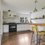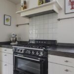 Luxe, landelijke keuken met o.a. een fornuis en kokend waterkraan