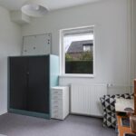 Door de dakopbouw aan de achterzijde is de 1e verdieping aanzienlijk vergroot en is er een compleet ‘achterhuis’ aangebouwd. De voormalige (kleine) badkamer is omgetoverd tot een modern toilet waardoor die achterwege gelaten kon worden op de nieuwe badkamer. Op de vergrote overloop zijn tevens nog een inbouwkast met witgoedaansluitingen en een handige linnenkast t.b.v. handdoeken, beddengoed etc. te vinden. Een gouden greep is het hoog gelegen Velux dakvenster die voor de nodige lichtinval en ventilatie zorgt. Het is te hoog om erbij te kunnen maar daarom is er voor een elektrisch bedienbare variant gekozen. Hetzelfde geldt voor de rolhor waardoor insecten ook hier geen kans krijgen. Je zou het waarschijnlijk niet verwachten maar het aanbouwgedeelte is tevens v.v. vloerverwarming waarbij de 3 ‘achtergelegen’ slaapkamer en de badkamer ieder afzonderlijk, middels een eigen thermostaat zijn te verwarmen.