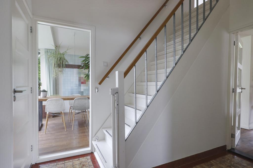 Een huis kan wel degelijk en fraai verbouwd zijn, maar dan kan nog steeds de warme woonsfeer ontbreken. Hier hoef je daar niet bang voor te zijn. De huidige bewoners hebben op smaakvolle wijze de woning aangekleed met moderne elementen en trendy afwerking. Daarbij moet je denken aan speelse doorkijkjes (bijv. tussen hal en woonkamer), in de keuken een werkblad dat in beton gegoten is, stijlvolle paneeldeuren, houten accenten afgewisseld met industriële, stalen elementen (bijv. in de trapleuning), verzonken inbouwspots in de plafonds en kleurrijk tegelwerk in toilet en badkamer. En niet te vergeten de hal/entree waar je nog de authentieke jaren ’50 tegeltjes terugvindt en nog de authentieke sfeer ademt.