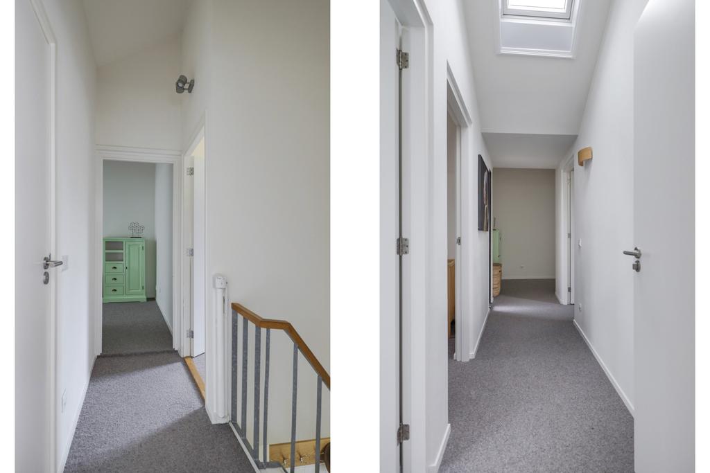 Overloop met 2e toilet, inbouwkast met witgoedaansluitingen, linnenkast en dakvenster