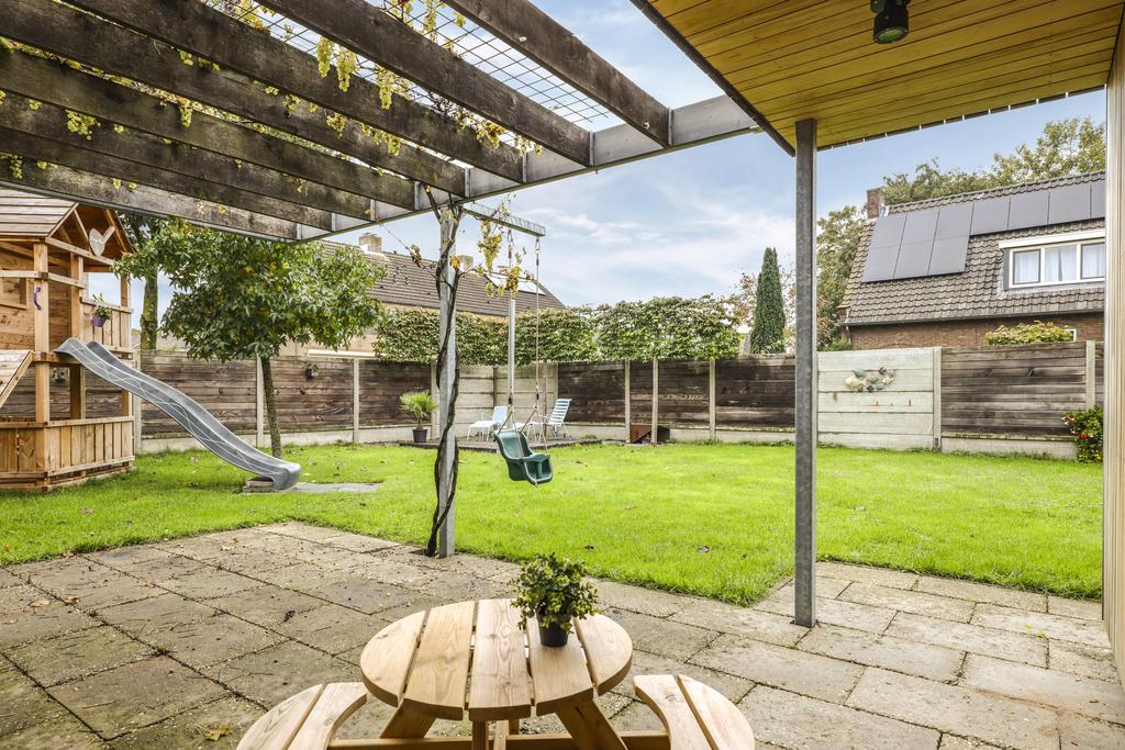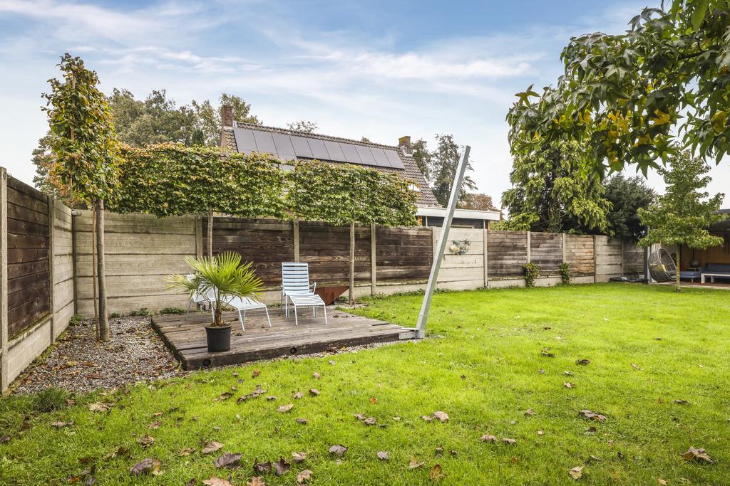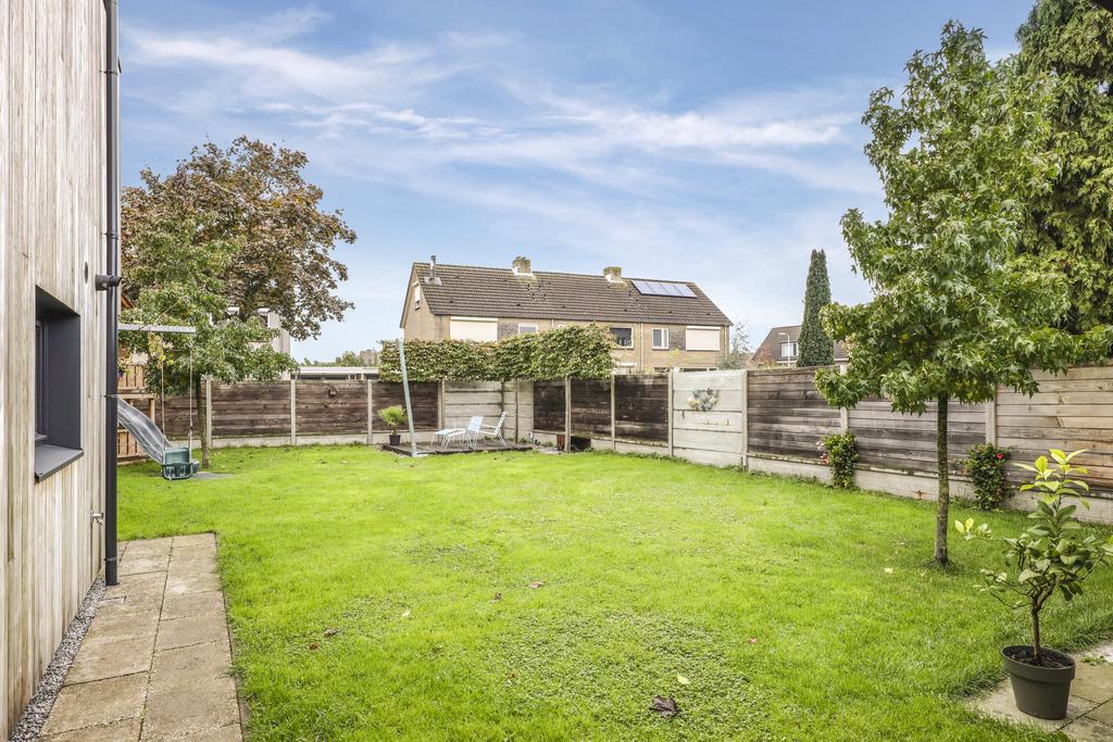 Een perceel van 650m2 is een serieus mooi perceel qua formaat, zeker wanneer deze ook rechthoekig is waarbij de woning gunstig op de kavel staat. De meeste tuin ligt aan de achterzijde waar je veel vrijheid geniet. Hier kun je met name van de middag en avondzon genieten. De tuin heeft een verzorgd en overzichtelijk karakter met veel gras en strakke (beuken)hagen. Ook zijn er enkele boompjes te vinden die de tuin natuurrijk aankleden. Er is meer dan voldoende ruimte voor speeltoestellen zoals een trampoline of een schommel. Het aanwezige houten speeltoestel met glijbaan wordt ter overname aangeboden. Wil je het gras lekker kort houden? Dan heb je de mogelijkheid om de ingeregelde robotmaaier over te nemen.