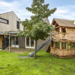Het houten speelhuis wordt ter overname aangeboden