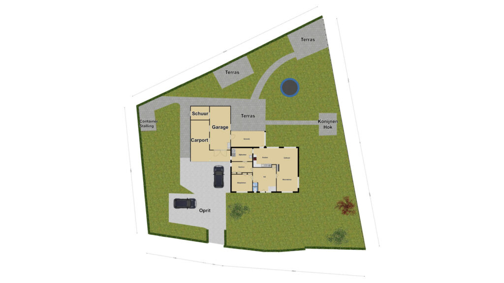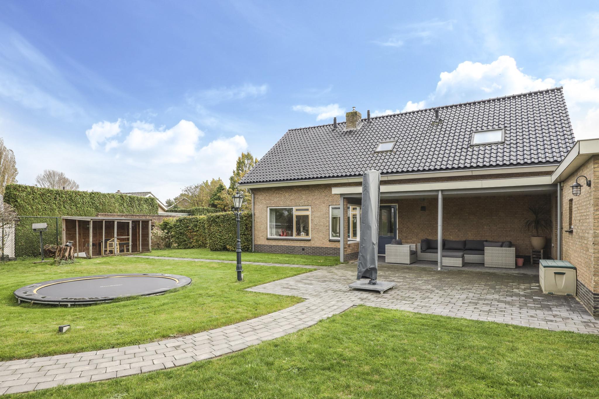 De instapklare woning staat op een fraai perceel van 1.475m2 (!) groot met o.a. een royale, aangebouwde, stenen GARAGE (30m2), een VERANDA aan de achterzijde, een grote CARPORT waar zelfs een lange caravan in past almede een SCHUUR ten behoeve van tuingereedschap. Met rondom een grasgazon en groene hagen heeft het veel vrijheid en privacy te bieden. Speeltoestellen zoals de ingegraven trampoline en schommel/duikelrek blijven achter. De tuin is voorzien van een puls, sectorsproeiers en druppelsysteem. De comfortabele OPRIT biedt plaats aan meerdere auto’s en is aangelegd met split en honingraadplaten.