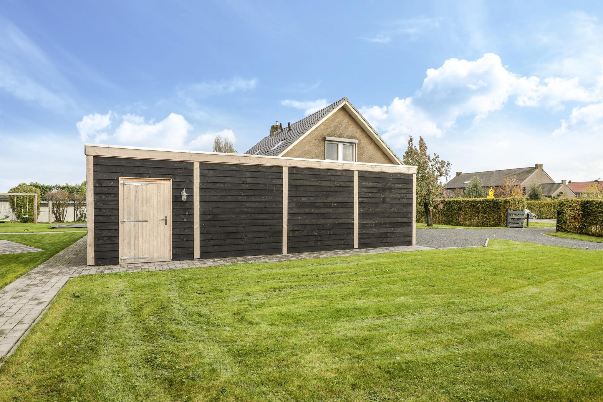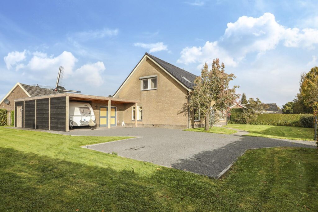Onlangs (2022) is er naast de garage een zeer degelijke carport met erachter een schuur gebouwd. De carport heeft een serieus formaat van maar liefst 7,7 meter lang en 3,5 meter breed. In combinatie met de juiste hoogte zou je er zelfs een volwaardige caravan onder kunnen stallen.