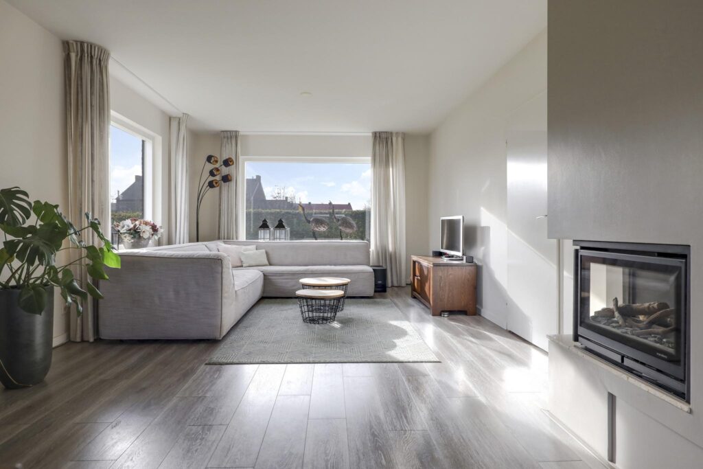 Woonkamer met ingebouwde gashaard