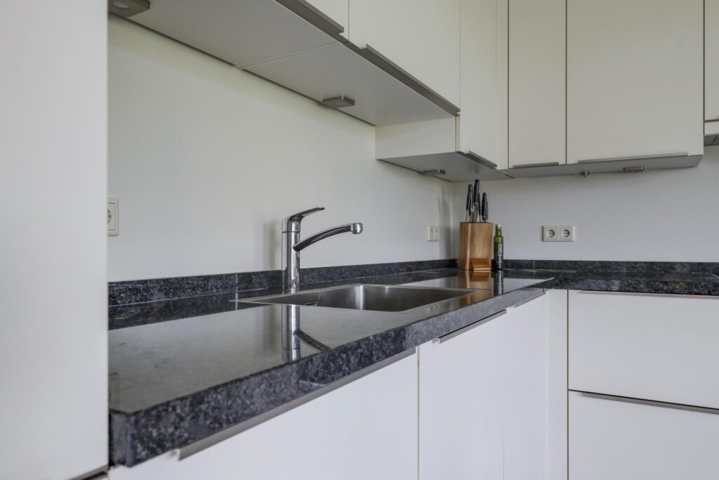 Luxe keuken met o.a. een werkblad van natuursteen