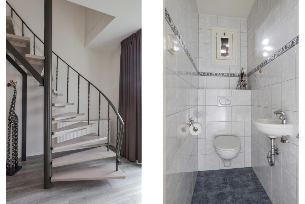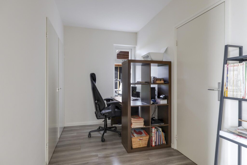 Vanuit de hal zijn verschillende leefruimtes toegankelijk. Natuurlijk vind je hier het toilet en de trapopgang en loop je rechtstreeks de woonkamer binnen. Maar er zijn nog meer (leef)ruimtes op de begane grond die je zeker zullen aanspreken. Denk daarbij aan een slaapkamer en een separate werkkamer. Beide kamers hebben een dubbele inbouwkast waar je de nodige spullen kunt opbergen. De slaapkamer zou je natuurlijk ook kunnen gebruiken als speelkamer. Mocht je voorkeur uitgaan naar een levensloopbestendige woning, dan zijn er mogelijkheden om een badkamer op de begane grond te creëren.