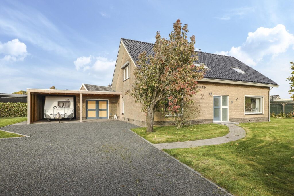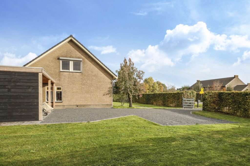Bij een woning van dit kaliber hoort ook een comfortabele oprit en parkeergelegenheid op eigen terrein. In 2022 is hier niet op bezuinigd door de oprit en parkeerplaatsen met split aan te leggen. Noemenswaardig zijn de honingraadplaten onder het split die voor stabiliteit en degelijkheid zorgen.