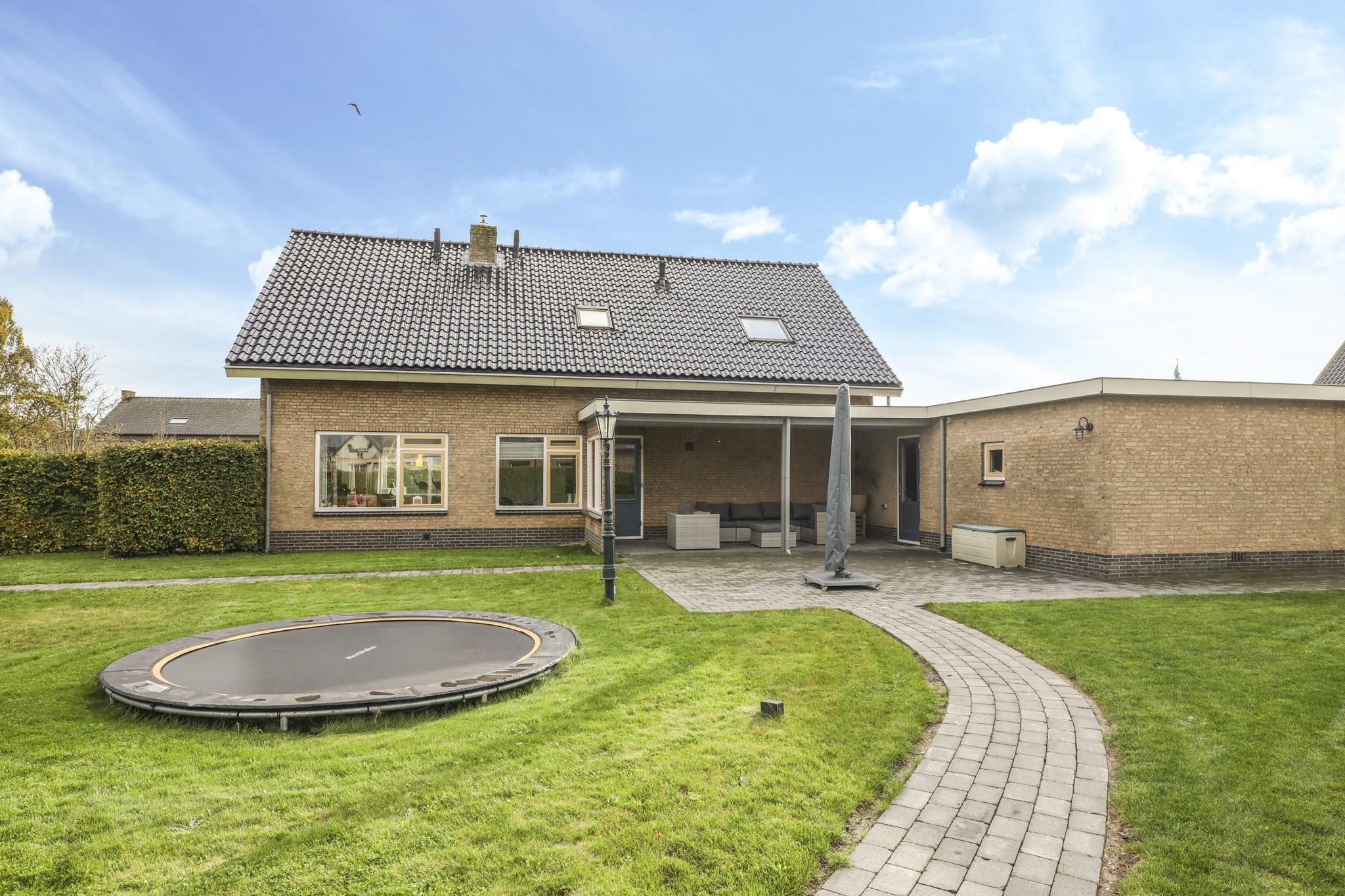 Aan de rand van het dorp gelegen, gemoderniseerd, geïsoleerd en verrassend ruim ingedeeld VRIJSTAAND WOONHUIS (ca. 182m2 woonoppervlak) met o.a. een lichte woonkamer met grote raampartijen en een ingebouwde gashaard, een luxe inbouwkeuken, een praktische bijkeuken en een slaap/speelkamer én werkkamer op de begane grond. Op de verdieping zijn nog 3 grote slaapkamers (met rolluiken) te vinden waaronder een heuse masterbedroom (met dubbele walk-in-closet), een royale en complete (nieuwe) badkamer en een vlizotrap naar opbergzolder. Andere grote pluspunten zijn het stucwerk (gehele woning), nieuwe elektra en verwarming en een compleet nieuw dak (dakbeschot, isolatie en dakpannen).
