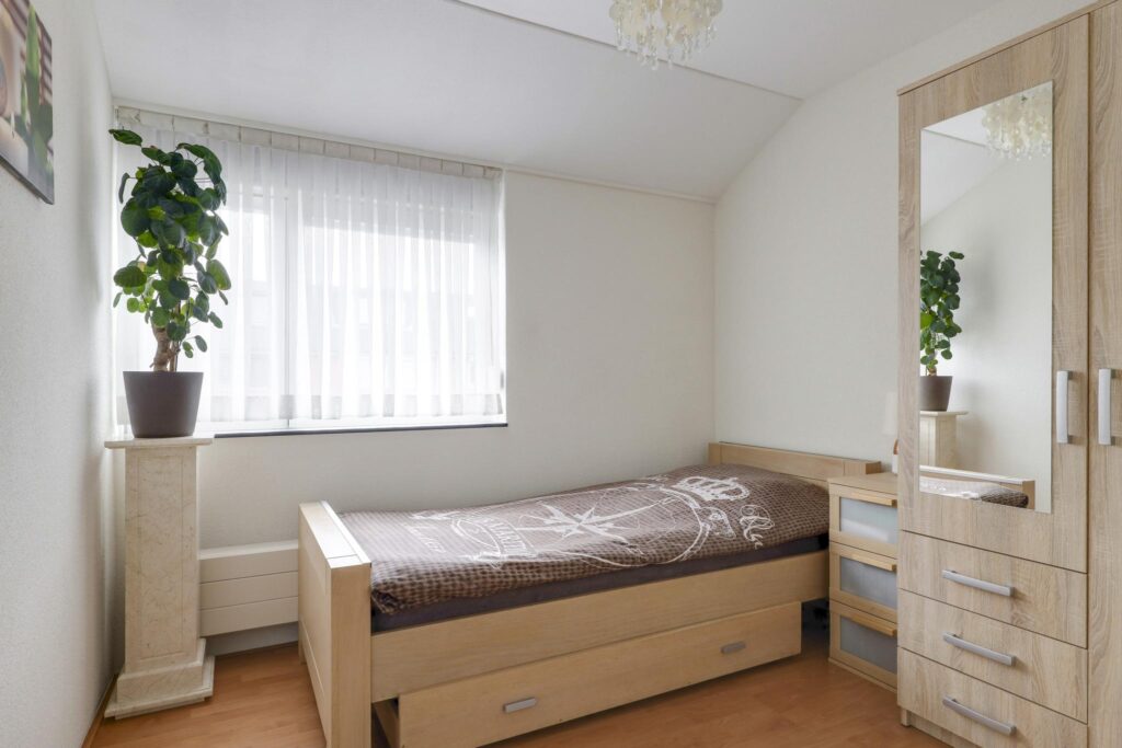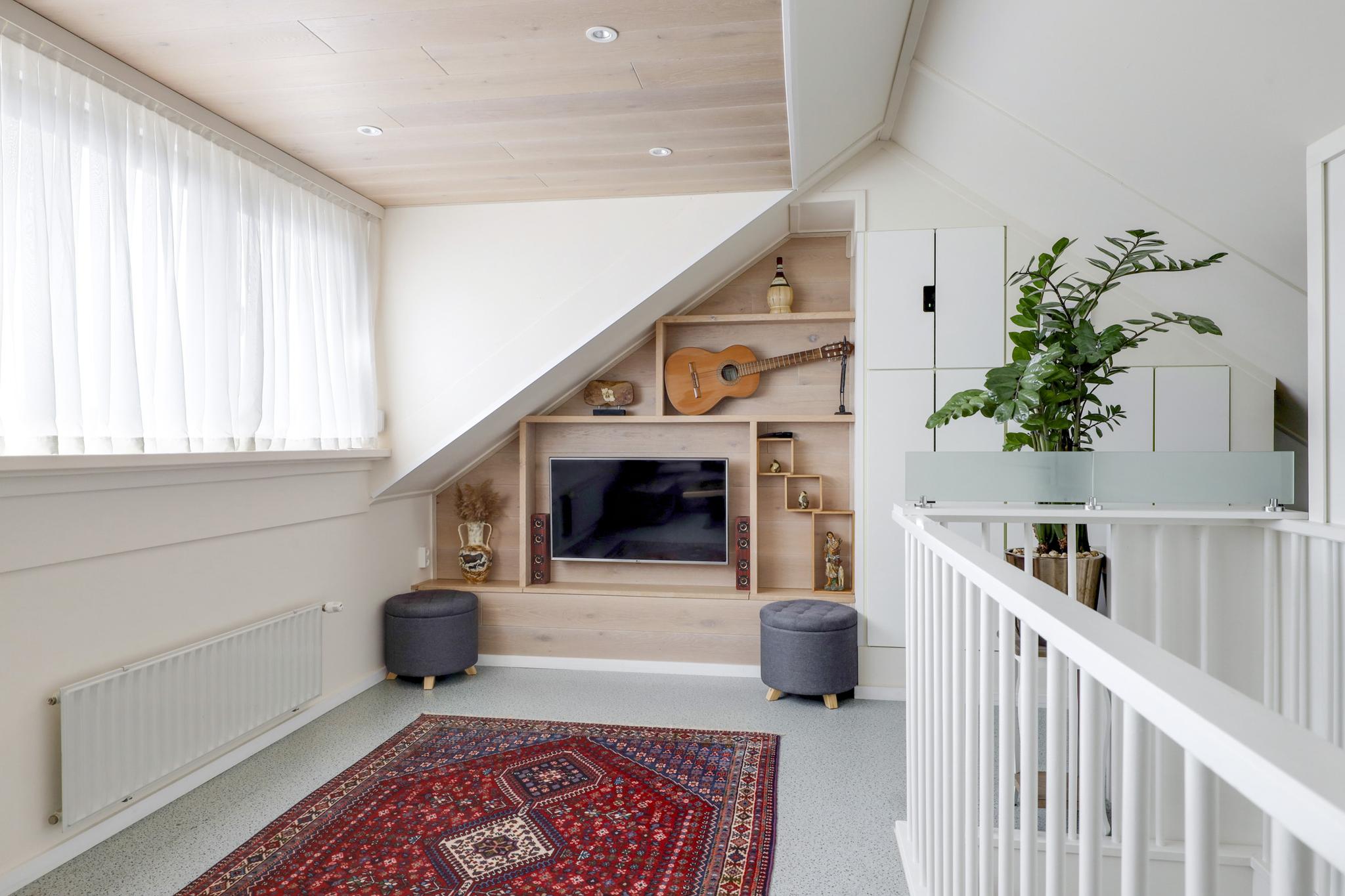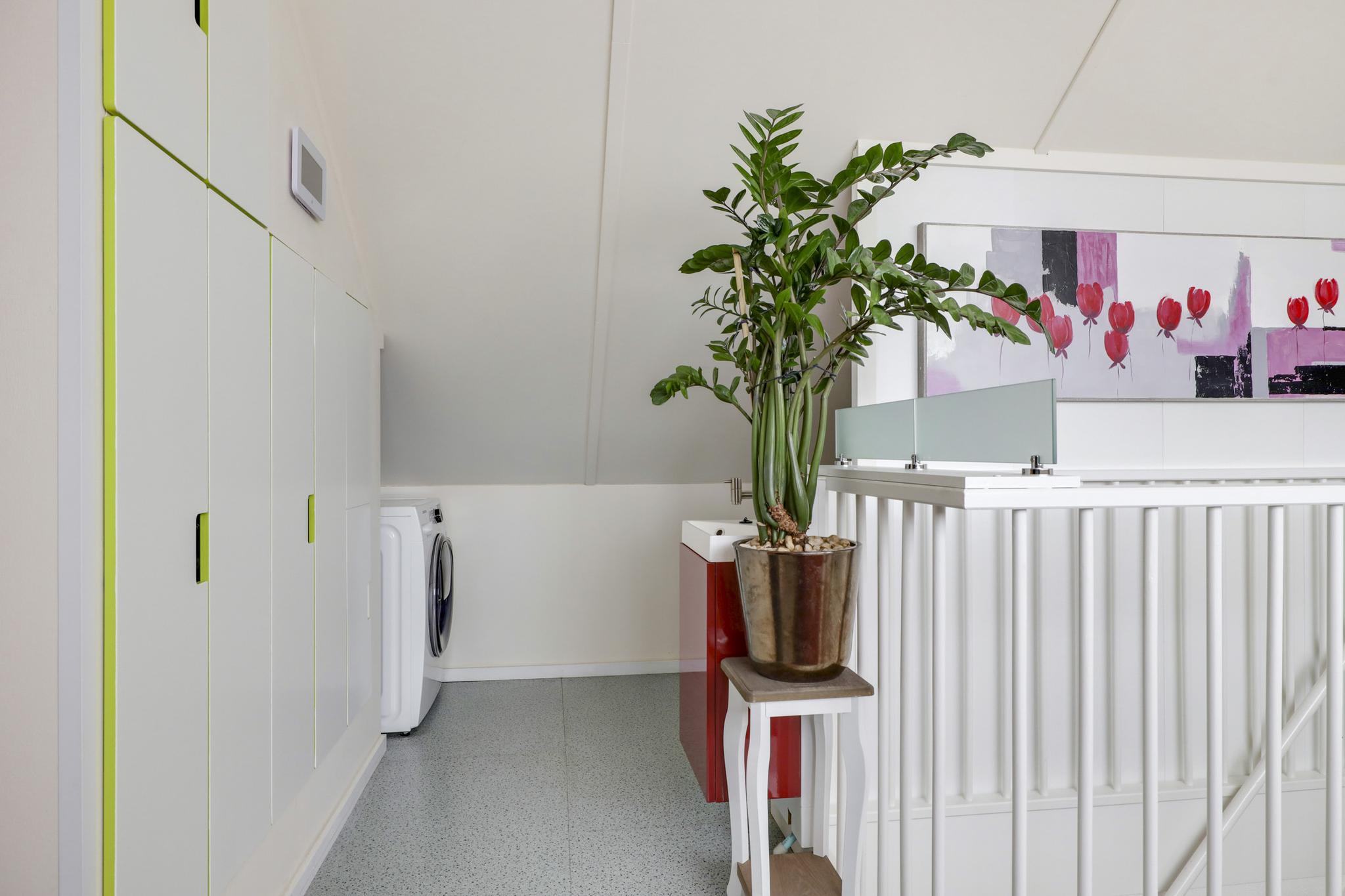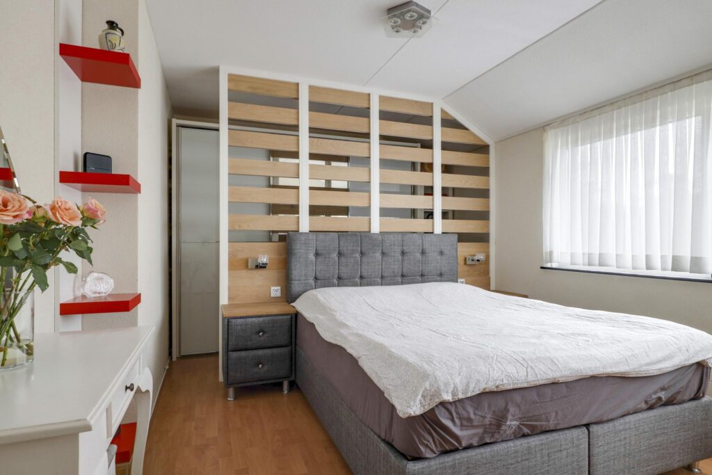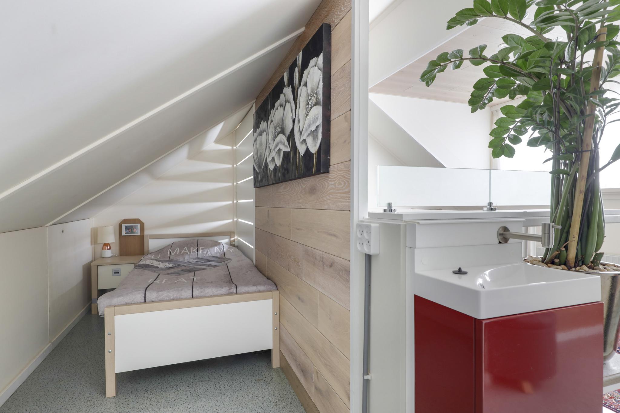 De 2e verdieping van deze woning is zeer verrassend te noemen. Deze woning is tot in die nok toe verzorgd afgewerkt en dat zie je hier weer terug. Een maximaal breed dakkapel is geplaatst om de leefruimte te vergroten. Op deze manier is er een extra slaapkamer ontstaan. De dakkapel is pas 4 jaar oud en voorzien van een kunststof kozijn. Op deze woonlaag tref je een wastafelmeubel en de witgoedaansluitingen. De opstelling van de cv-ketel en de mechanische ventilatie box zijn verzorgd in een kastenwand weggewerkt. Onder de schuine dakvlakken is knieschot opbergruimte aanwezig.