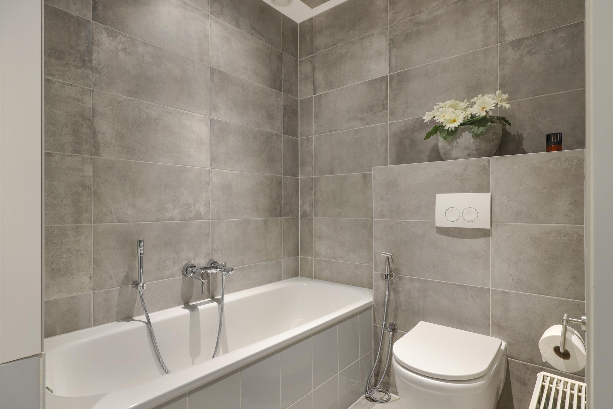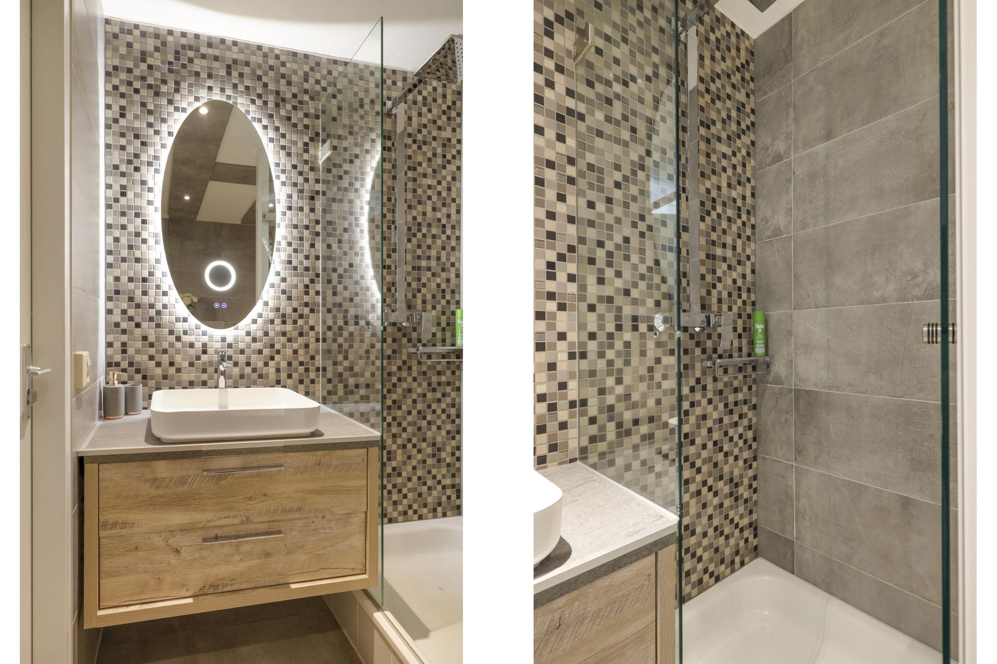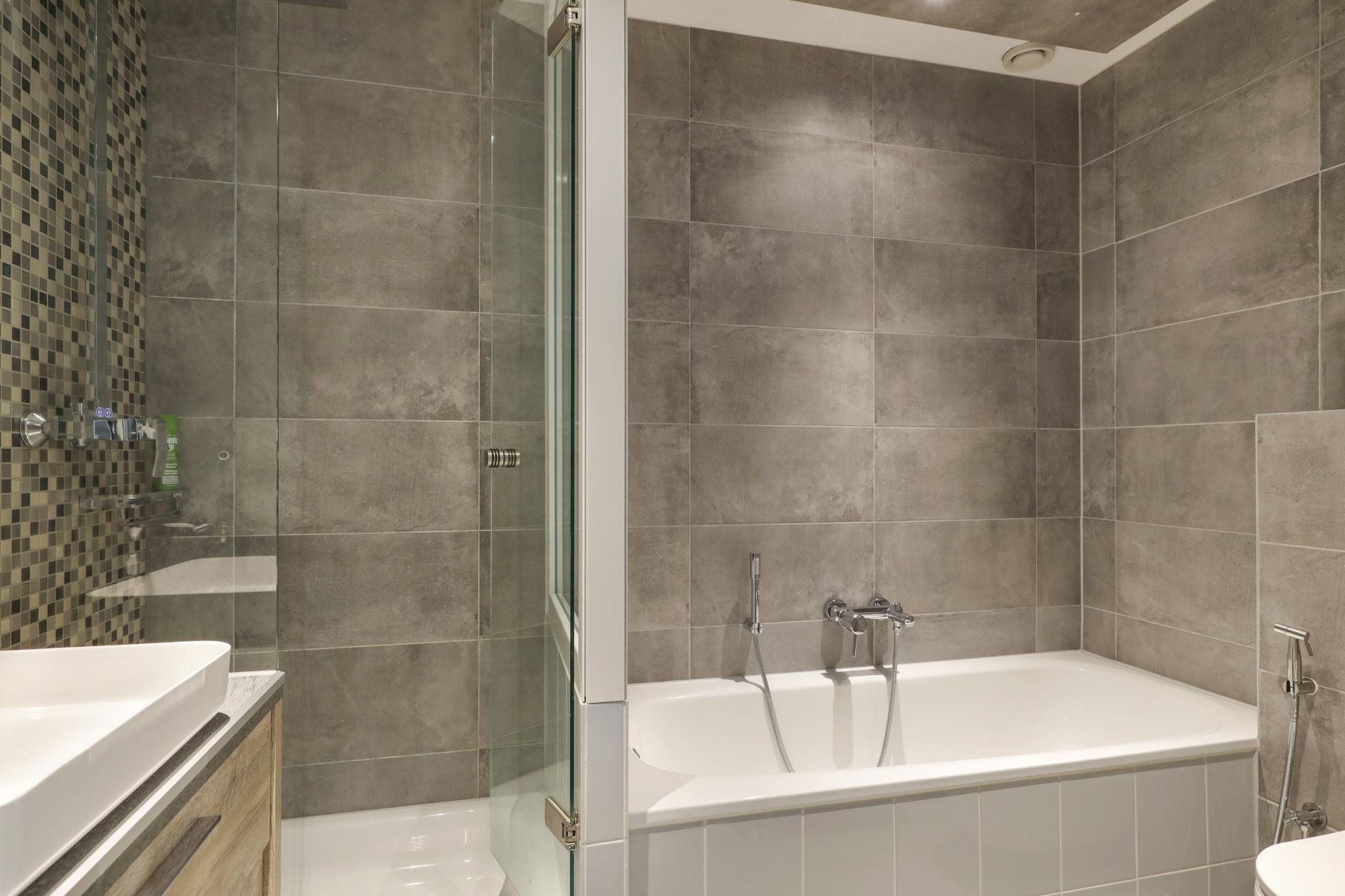 De badkamer valt niet uit de toon met de rest van de woning. Ook deze ruimte is trendy en modern ingericht. De ruimte is praktisch ingericht met een ligbad, een inloopdouche, een 2e (zwevend geplaatst) toilet en een wastafelmeubel. Het meubel heeft 2 brede lades voor opbergruimte en een stijlvolle waskom. De spiegel is voorzien van verlichting. De kranen zijn recent vernieuwd waardoor dit er verzorgd uit ziet. Om te ventileren is er mechanische ventilatie aanwezig.