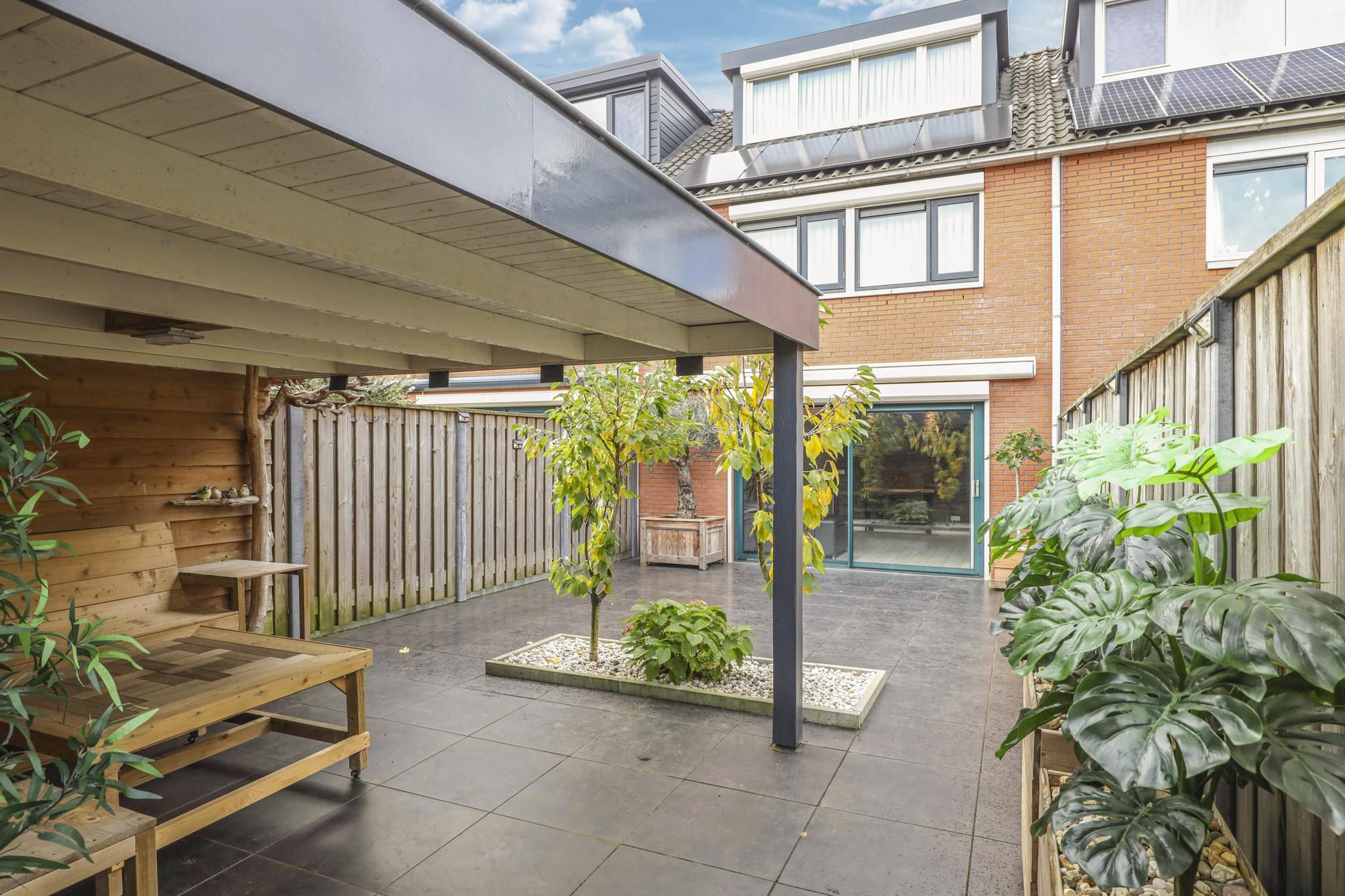 Dit is een woning en die op meerdere vlakken net even iets meer te bieden heeft dan de gemiddelde tussenwoning. En al deze pluspunten versterken elkaar waardoor het in zijn geheel, inclusief tuin, een bezienswaardige woning maakt. Het valt al meteen op in de voortuin waar steenkorven en antracietkleurige tegels de woning aankleden. Eénmaal binnen straalt de woning je tegemoet met een eenduidig en hoogwaardig afwerkingsniveau waar nauwelijks in geleefd lijkt. De keuken is luxe en compleet en ook de badkamer heeft alles wat je wenst. De achtertuin is het verlengde van de voortuin, waarbij de strakke en moderne aankleding één op één doorloopt. Daarbij springt de stijlvolle veranda meteen in het oog. Het is niet zomaar een overkapping, want deze veranda is op degelijke wijze en met mooie materialen gebouwd.