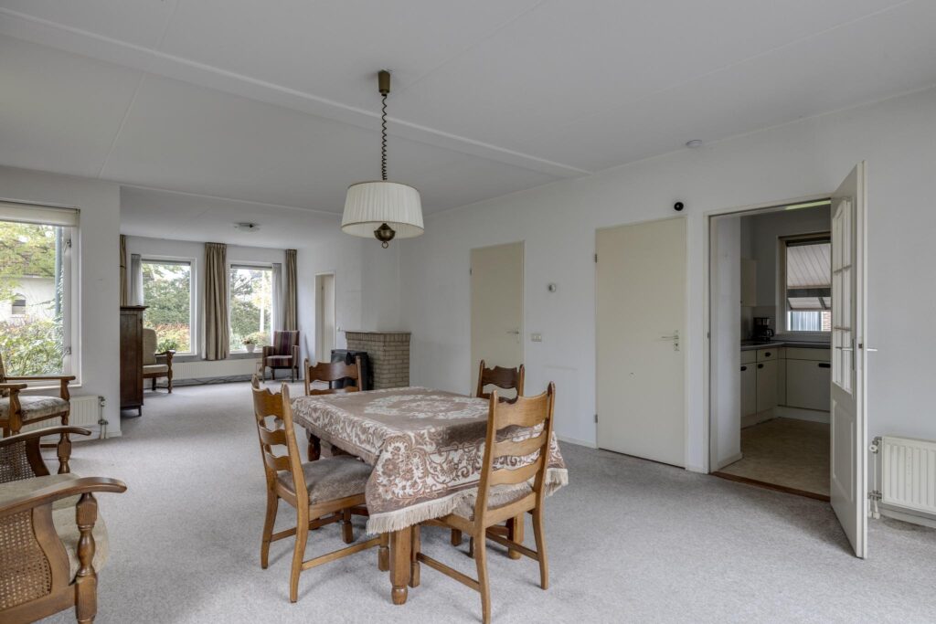 Quote van de makelaar: “Zoek je veel ruimte, vrijheid en bewoningsmogelijkheden op een bijzondere plek, dan mag je deze woning niet missen. Het huis is van binnen eenvoudig afgewerkt maar dat biedt juist potentie om geheel je eigen droomwoning te creëren. Bovendien is de woning levensloopbestendig te bewonen, biedt de inpandige, geïsoleerde garage mogelijkheden voor een kantoor of praktijk aan huis en zal het lastig zijn om een mooie locatie met zoveel vrijheid aan de achterzijde te vinden”.