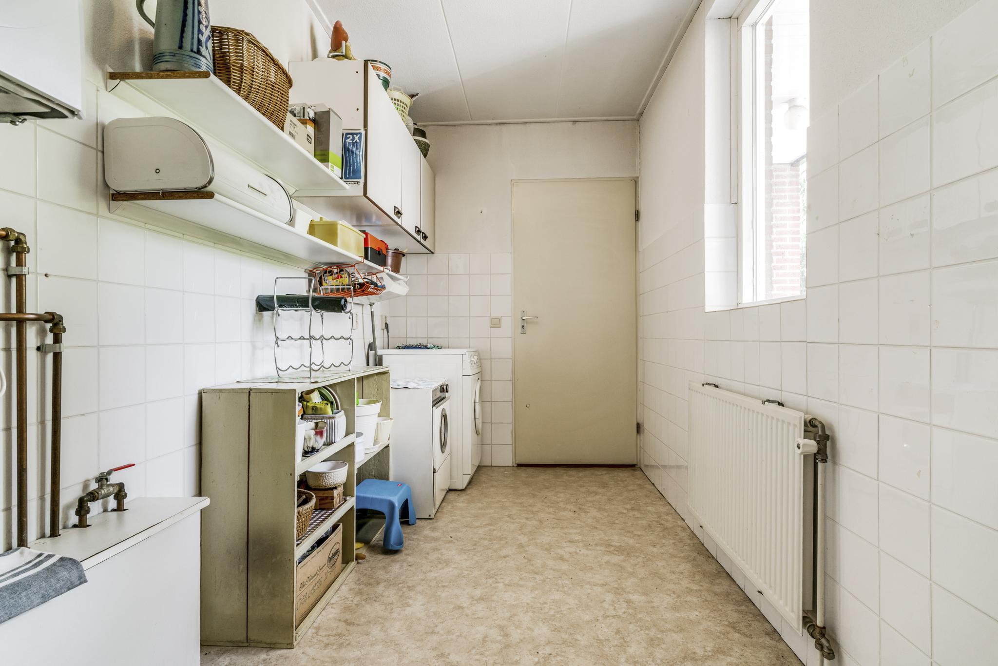 Bij een gezinswoning als deze hoort natuurlijk ook een bijkeuken. Vanuit de keuken is er een doorloop naar deze praktische ruimte waar je onder meer de witgoedaansluitingen terugvindt. Er is ruimte voor een wasmachine, wasdroger en bijvoorbeeld een (extra) vriezer naast elkaar. Een tuindeur geeft direct toegang tot het terras en de achtertuin waardoor je ook gemakkelijk de was buiten kunt laten drogen.