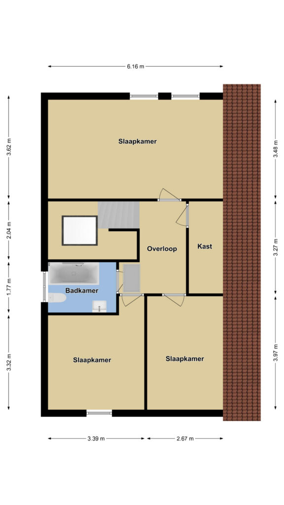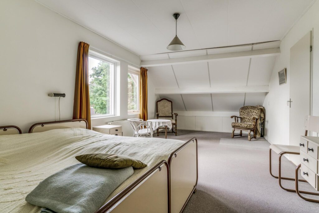 Te beginnen met de masterbedroom die over de volledige breedte van de woning is gelegen (ca. 22m2, gemeten vanaf 1,5m hoogte). Door dit royale formaat kun je er met gemak een grote boxspring en een grote linnenkast kwijt. Je zou zelfs kunnen nadenken over een walk-in-closet. Noemenswaardig is het uitzicht aan de achterzijde waarbij je vrij weg kijkt over de weilanden. Dit betekent ook geen inkijk en veel privacy. Slaapkamers 2 en 3 zijn respectievelijk 12m2 en 10m2 groot en zijn qua formaat mooie tienerkamers. En niet te vergeten de ‘tussenkamer’ die meer potentie heeft dan een opbergkamer. Wanneer je hier een dakkapel zou plaatsen (eventueel doorlopend op de slaapkamers ernaast), dan creëer je een leuke logeer- of werkkamer waardoor de woning nog interessanter wordt voor een groot gezin.