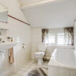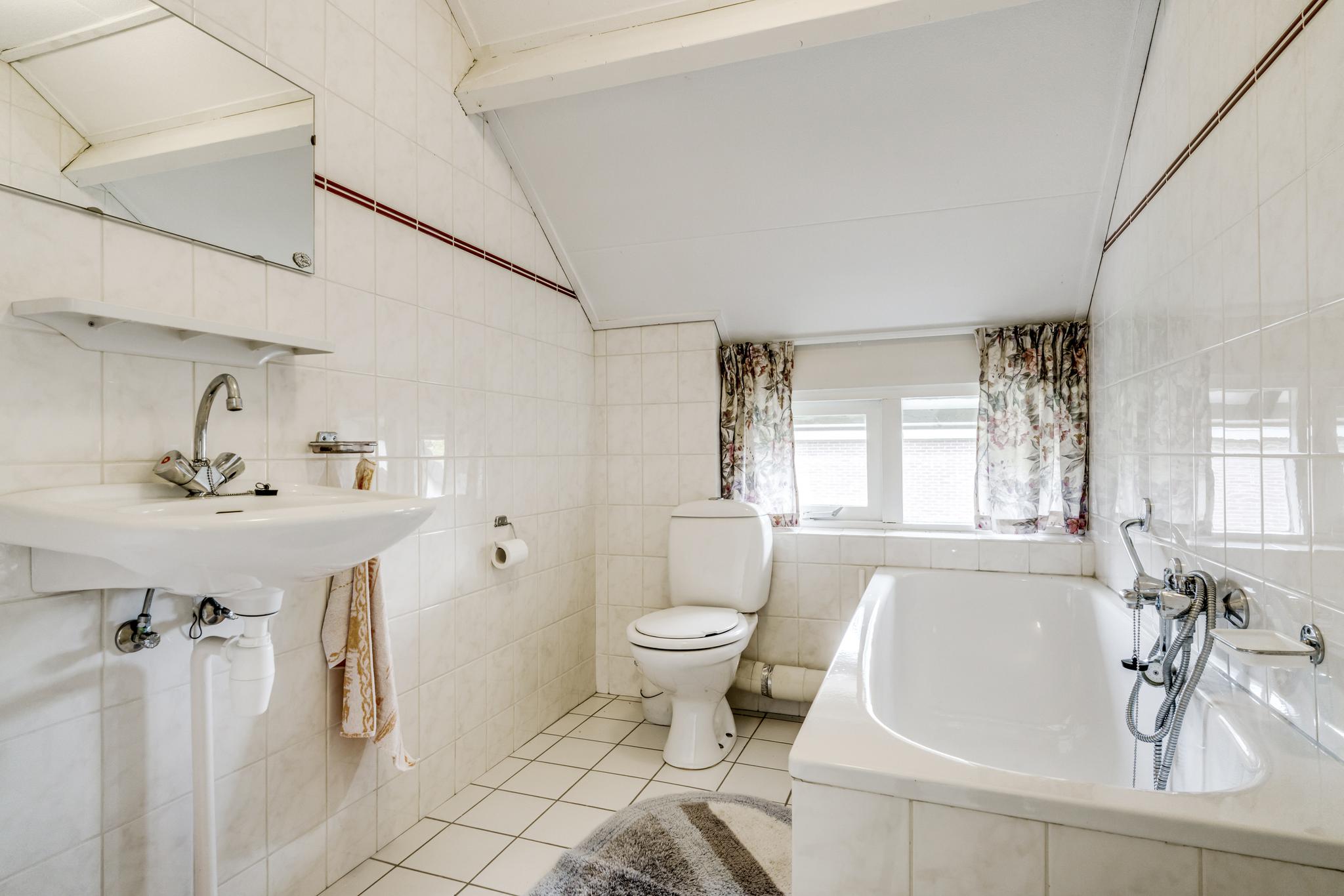 Natuurlijk mag een badkamer niet ontbreken op de slaapverdieping. Deze 2e badkamer is ruimer opgezet dan de 1e op de begane grond. De ruimte is ingedeeld met een ligbad, 2e toilet en een wastafel. Het sanitair is allemaal nog van de bouwperiode, maar biedt daardoor ook hier weer perspectief om je eigen stempel op de woning te drukken. Je zou daarbij kunnen kiezen voor een 2-persoons wastafelmeubel en/of een inloopdouche.