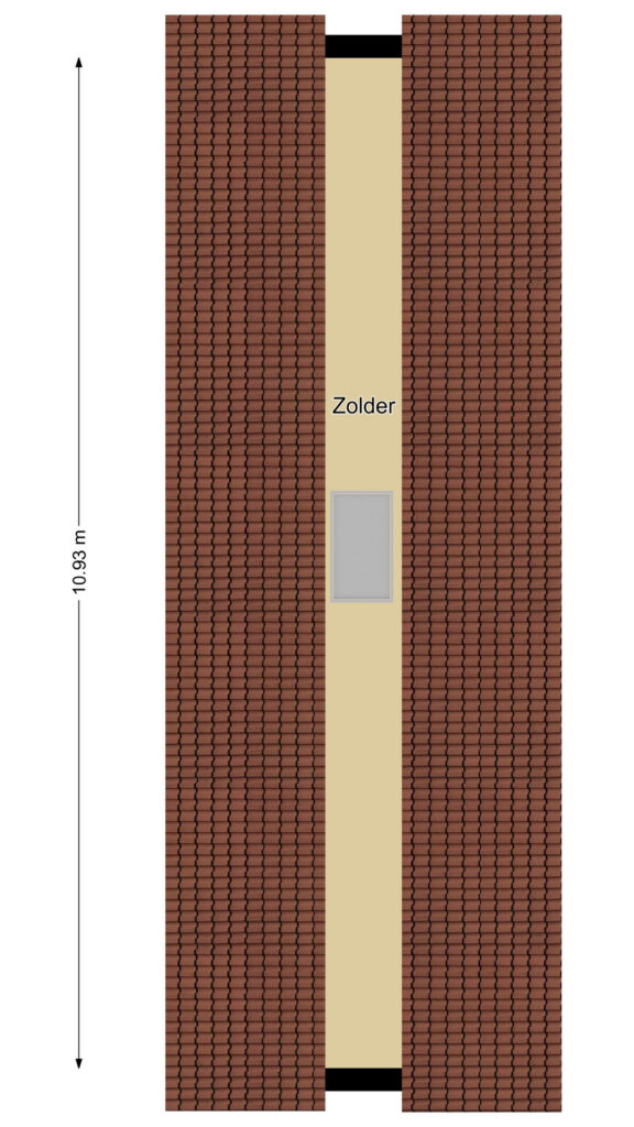 Zolder met opbergmogelijkheden (nokhoogte ca. 1,2 meter).