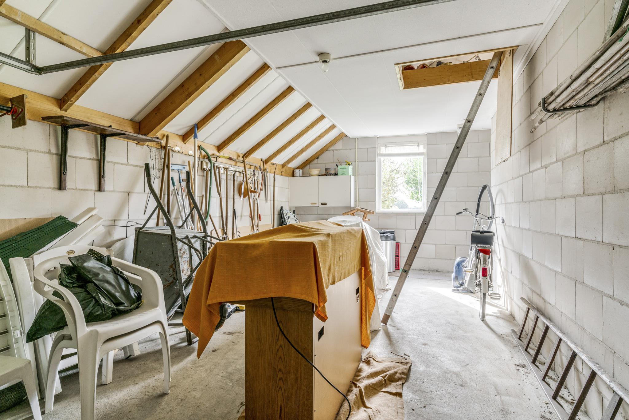 Inpandige garage met luik naar zolder (met stahoogte in de nok) en tuindeur.