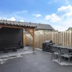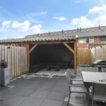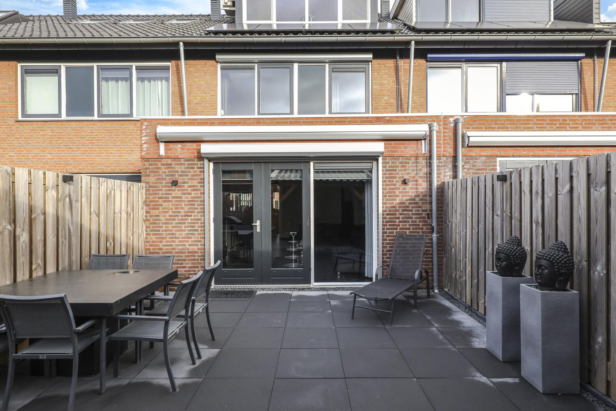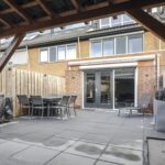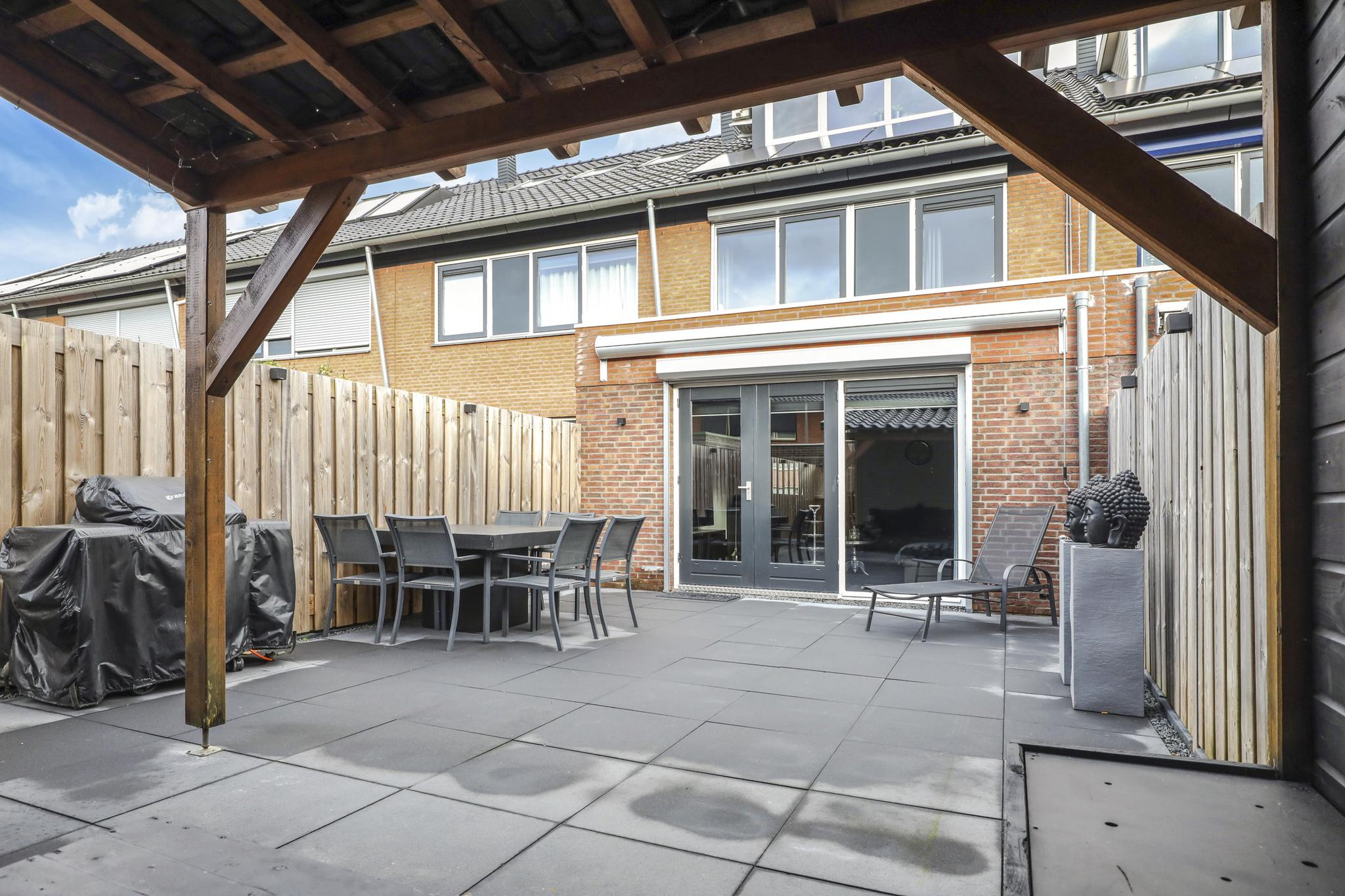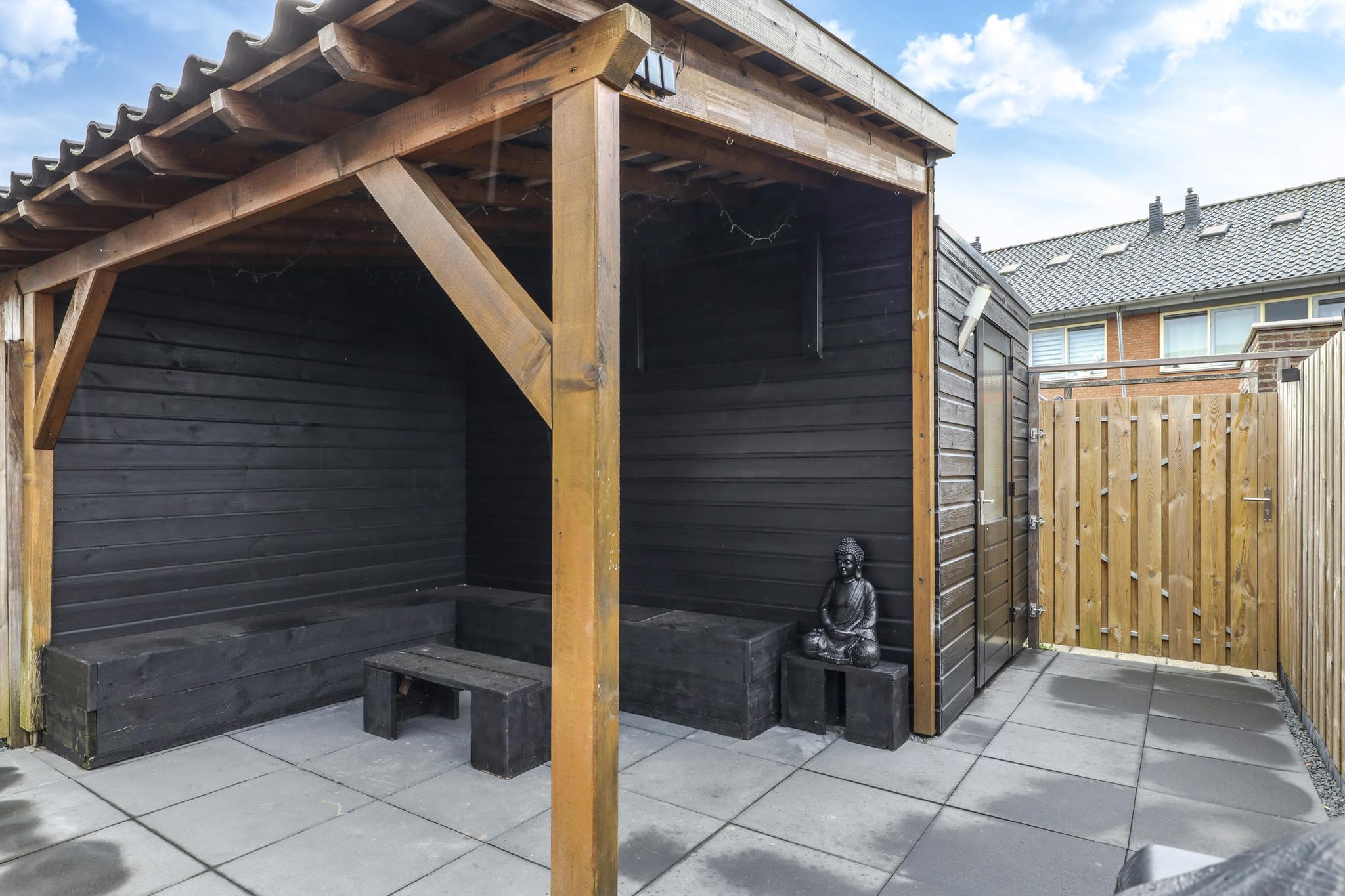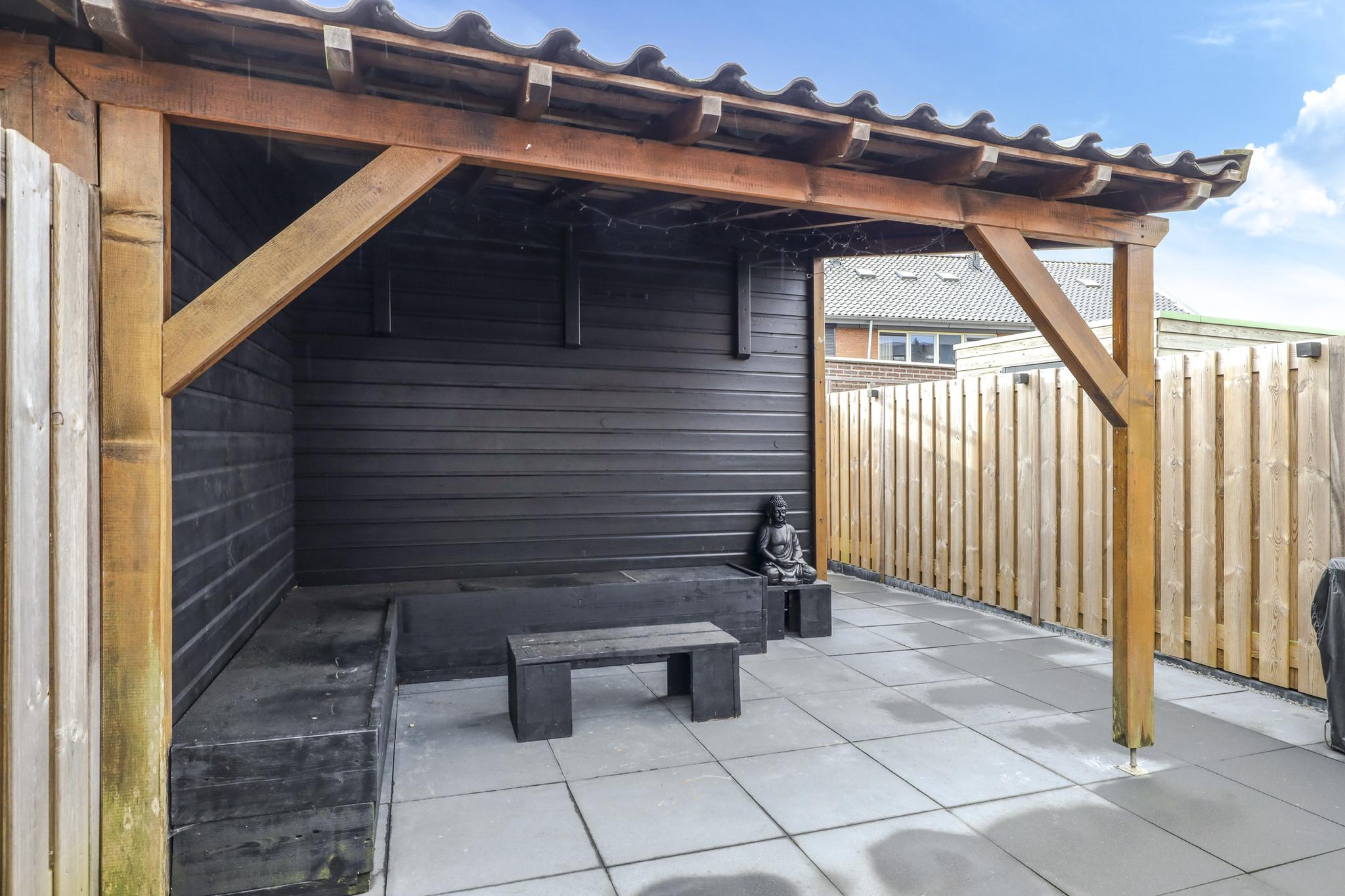 De achtertuin op het zuiden is onderhoudsvriendelijk aangelegd en voorzien van elektrisch bedienbare zonwering. In de tuin staat een stijlvolle veranda en een houten schuur, ook is er een achterom aanwezig. De woning ligt aan een autoluwe straat waarbij je aan de voorzijde zicht hebt op een groenstrook.