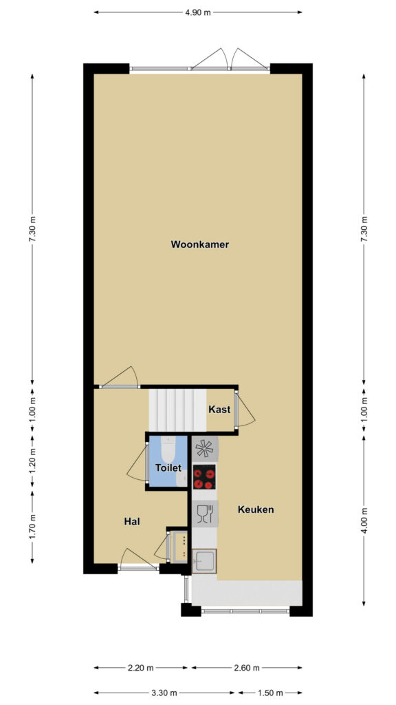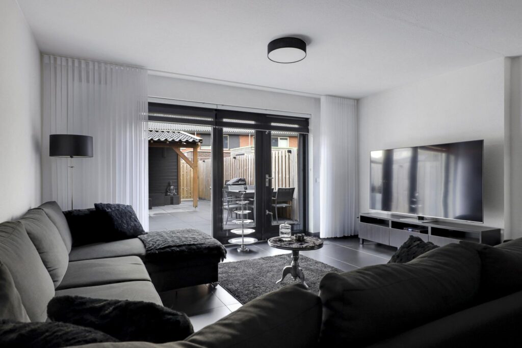 Uitgebouwde woonkamer met openslaande tuindeuren