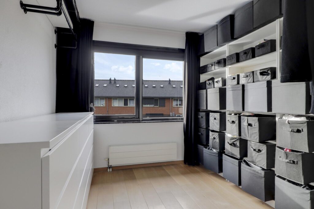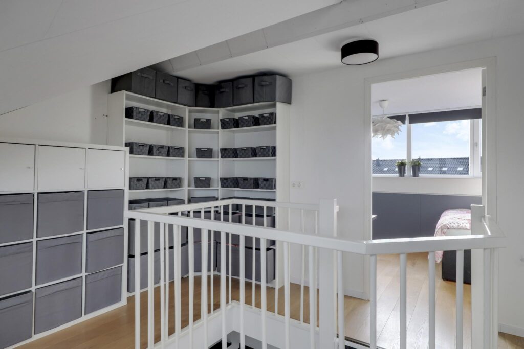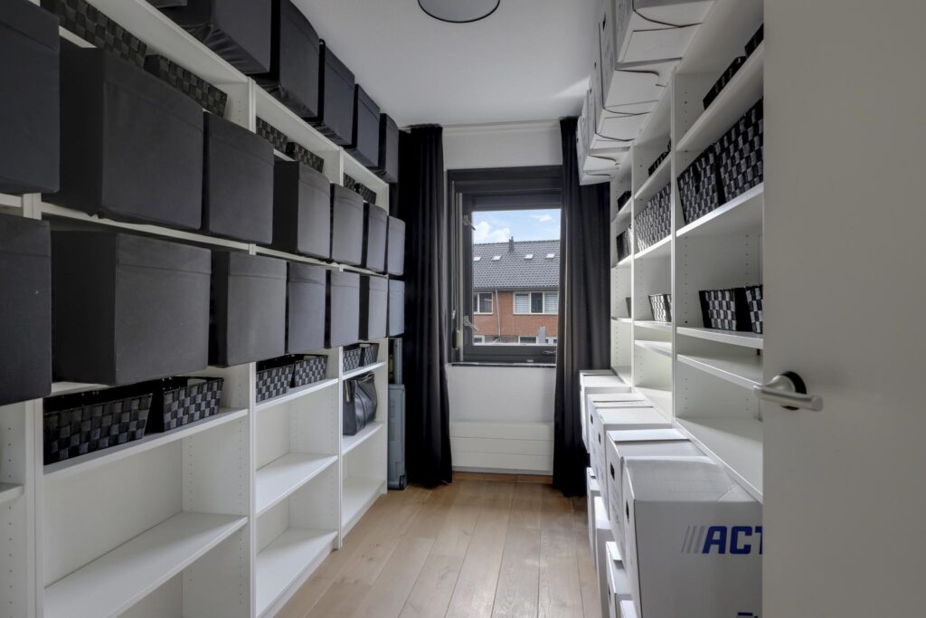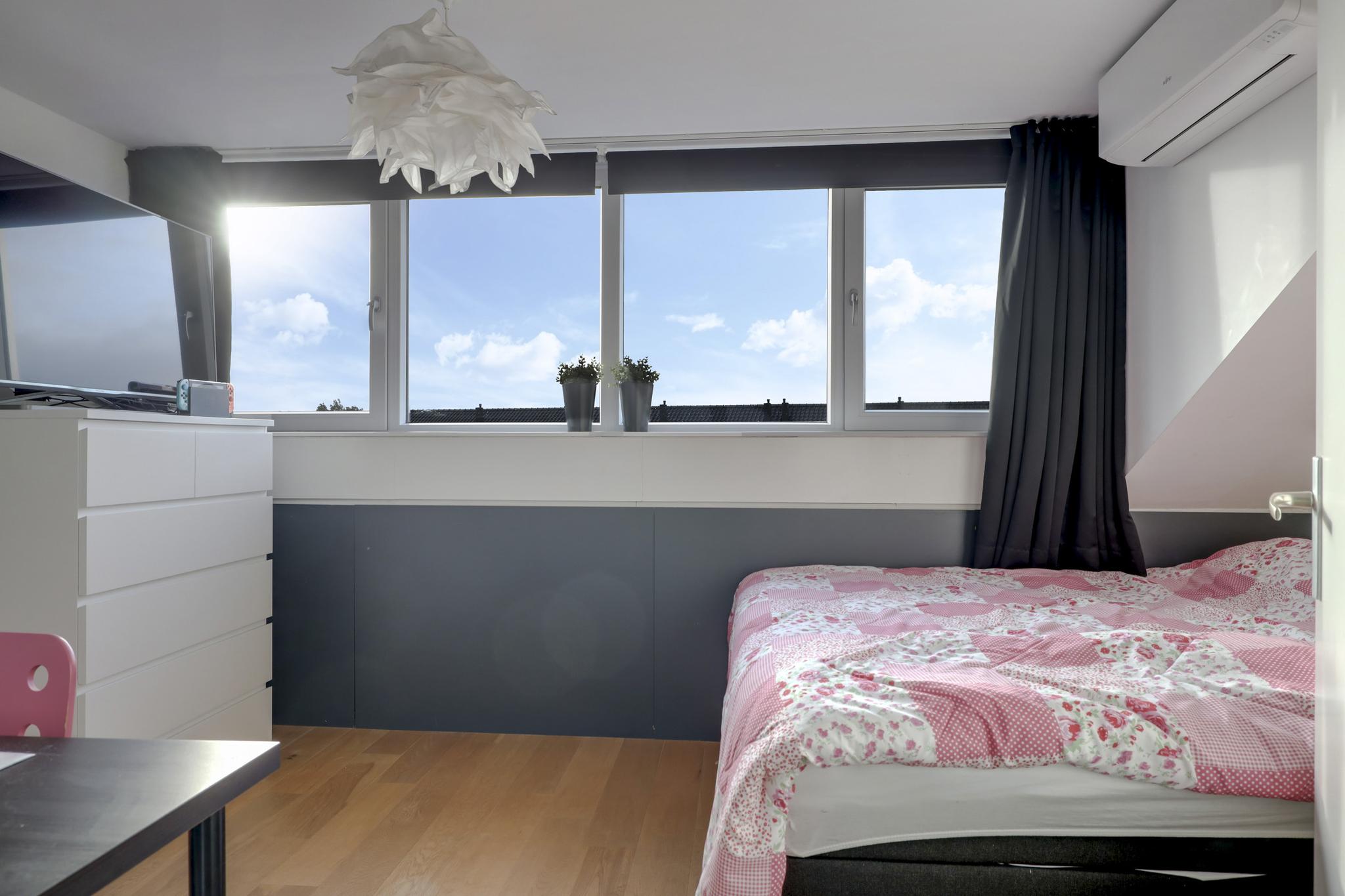 Middels een vaste trap is de 2e verdieping bereikbaar. Deze verdieping is met één woord verrassend te noemen. Er is hier een 4e slaapkamer gecreëerd aan de achterzijde van de woning welke is voorzien van een maximaal breed dakkapel. Deze kamer is aangenaam koel te houden door de aangebrachte airconditioning. Op de voorzolder is nog een dakkapel te vinden wat voor extra daglicht zorgt. Door de extra ontstane ruimte kan je hier ook nog een werkhoek creëren. Op de voorzolder tref je tevens de wasmachine, wasdroger, cv-ketel opstelling en de mechanische ventilatie-unit. Opvallend is dat hier net als op de eerste verdieping een houten vloer ligt. Knieschotten zorgen voor de nodige opbergruimte.