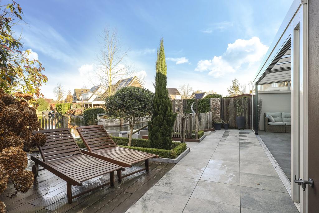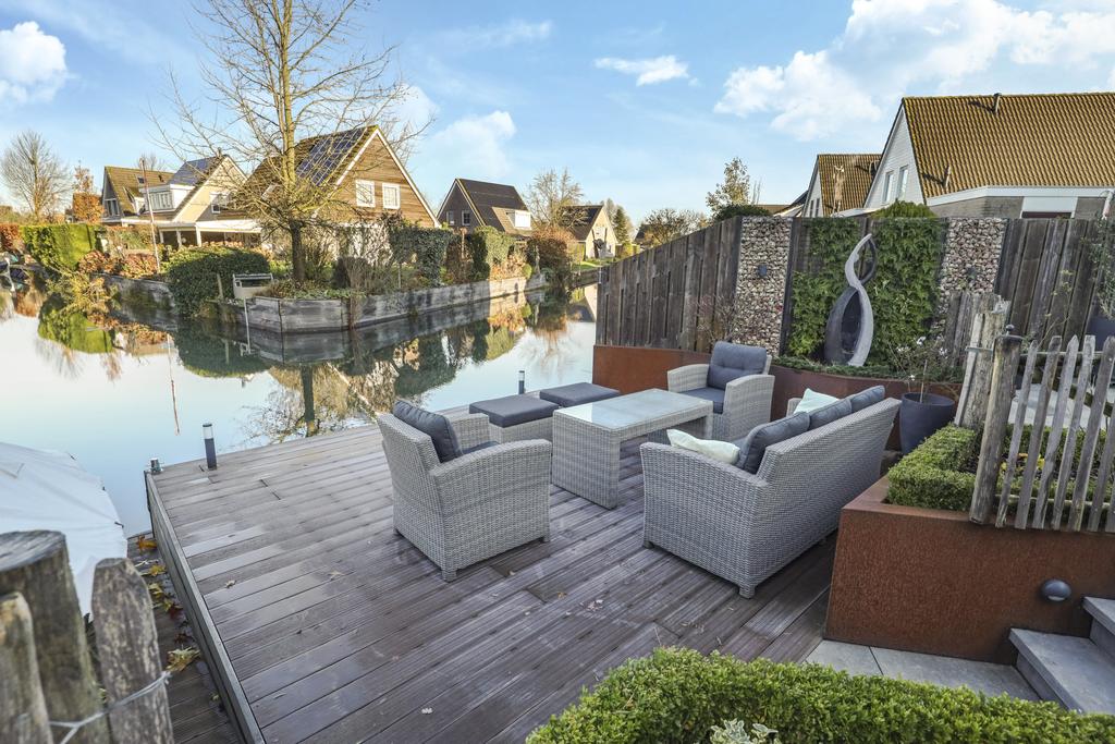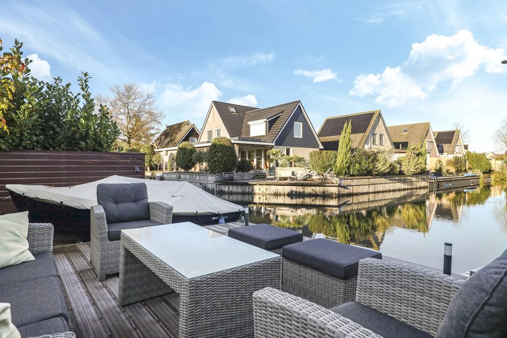 Quote van de makelaar: “WOW, wat een gaaf huis is dit. Hier zijn werkelijk kosten nog moeite bespaard gebleven om er iets bijzonders van te maken. Hier is perfect de balans gevonden tussen het binnen- en buitenleven die letterlijk naadloos in elkaar overlopen met als pronkstukken de tuinkamer en het terras aan het water die je het hele jaar het vakantiegevoel zullen geven”.