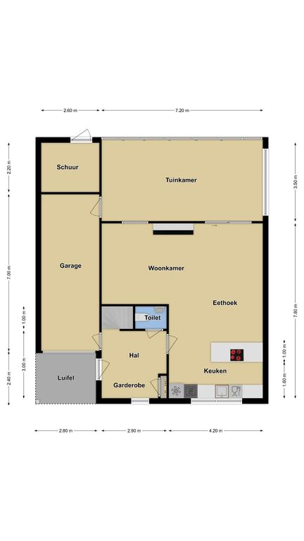 Ca. 132m2 woonoppervlak (incl. aangebouwde tuinkamer, excl. inpandige garage)