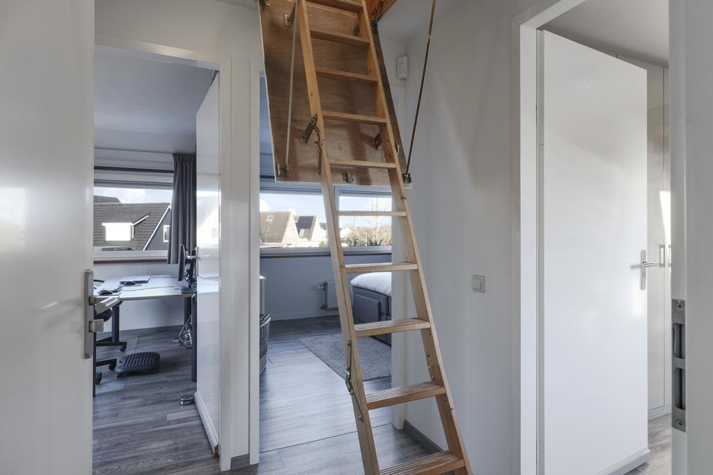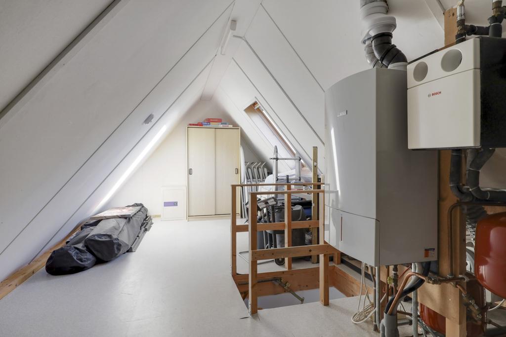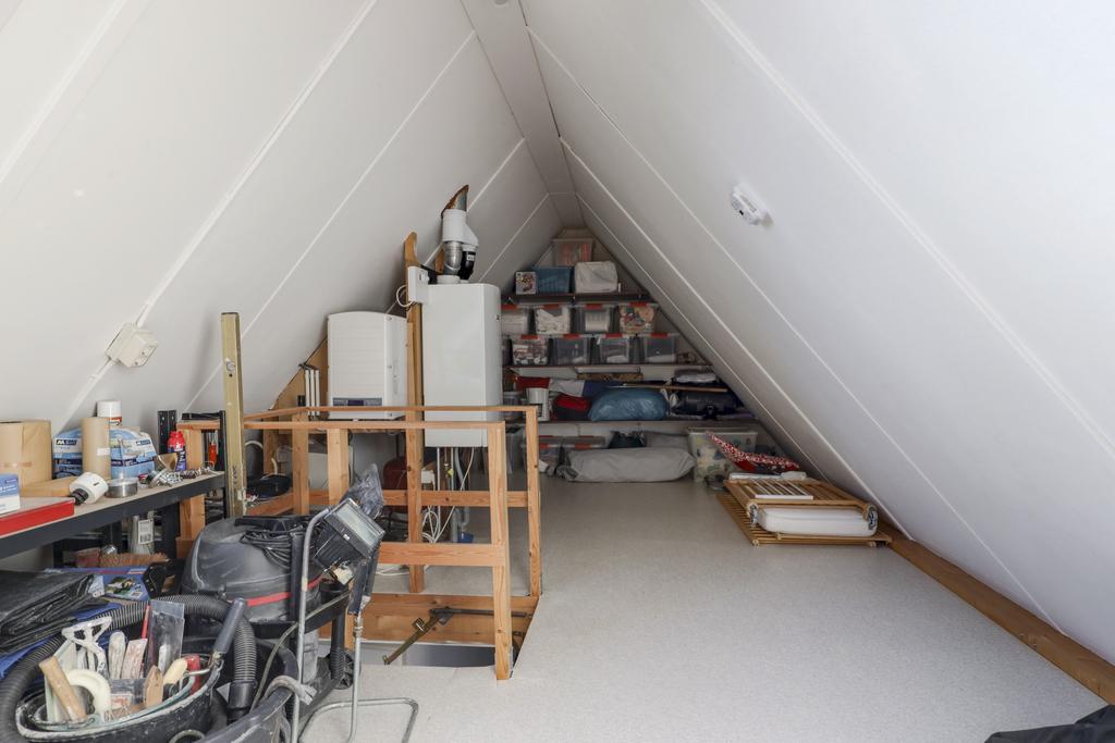 Middels een vlizotrap is de zolder te bereiken. Met een nokhoogte van 2,5 meter is deze verdieping groter dan je zult verwachten. Er bestaat een mogelijkheid om een 2e vaste trap te plaatsen waardoor je de woning aanmerkelijk vergroot en een extra slaapkamer kunt creëren. Het is immers een volwaardige verdieping waar je in de huidige situatie met name veel (seizoen)spullen kunt opbergen. Een dakvenster, wat voorzien is van een verduisteringsscherm, zorgt hier voor de nodige daglicht.