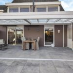 Luifel/overstek met inbouwspots bij garage en voordeur
