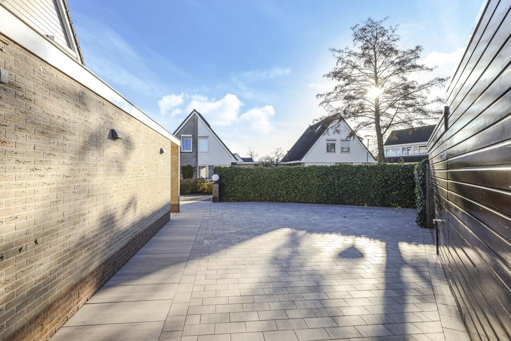 Parkeren op eigen terrein is voor velen een must. Heb je meerdere auto’s en vind je comfortabel parkeren belangrijk, dan wordt je hier erg blij van. Je kunt immers met gemak 4 tot 5 auto’s de oprit op rijden. Met 2 auto’s hoef je elkaar zeker niet in de weg te staan. Daarnaast heb je de mogelijkheid om een volwaardige caravan of camper bij huis te stallen voor het geval je in de zomer erop uit wil gaan wanneer je wilt. Aan de zijkant van de garage zijn er 3 downlampen aanwezig. Door de overstek met spotverlichting vóór de garage sta je ook altijd lekker droog bij de voordeur.