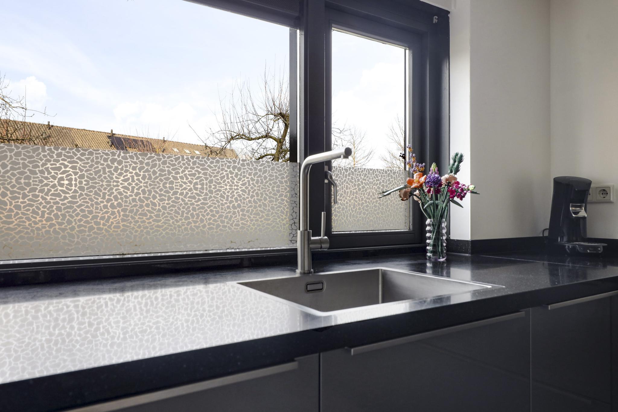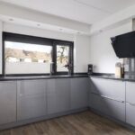 De keuken vinden we terug aan de voorzijde waarbij het een vrij uitzicht heeft op de groenvoorziening tegenover de woning.