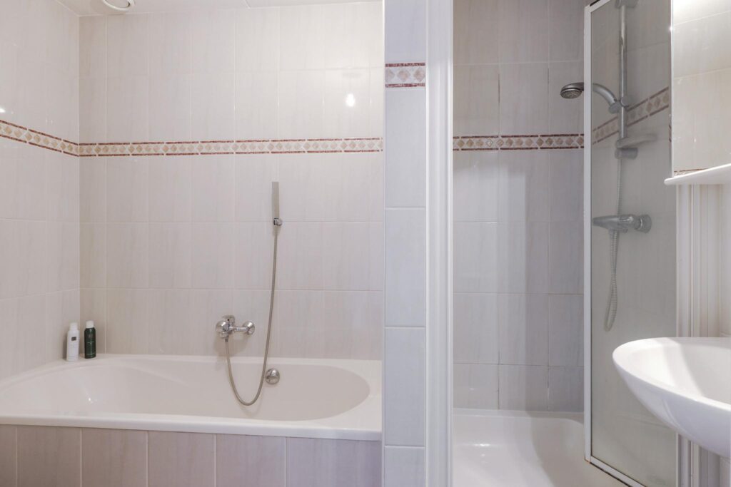 Complete badkamer met zowel een ligbad als een douche
