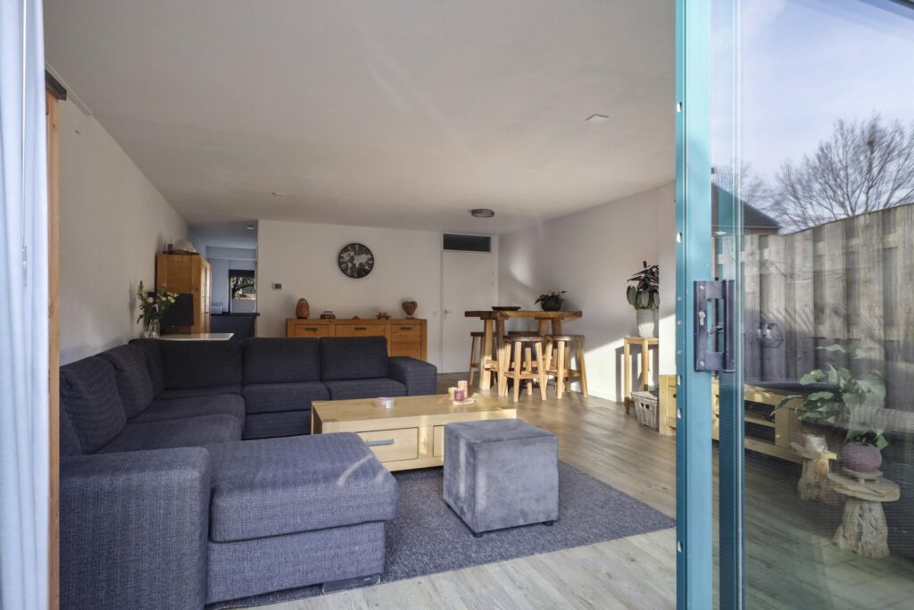Uitgebouwde woonkamer met brede schuifpui