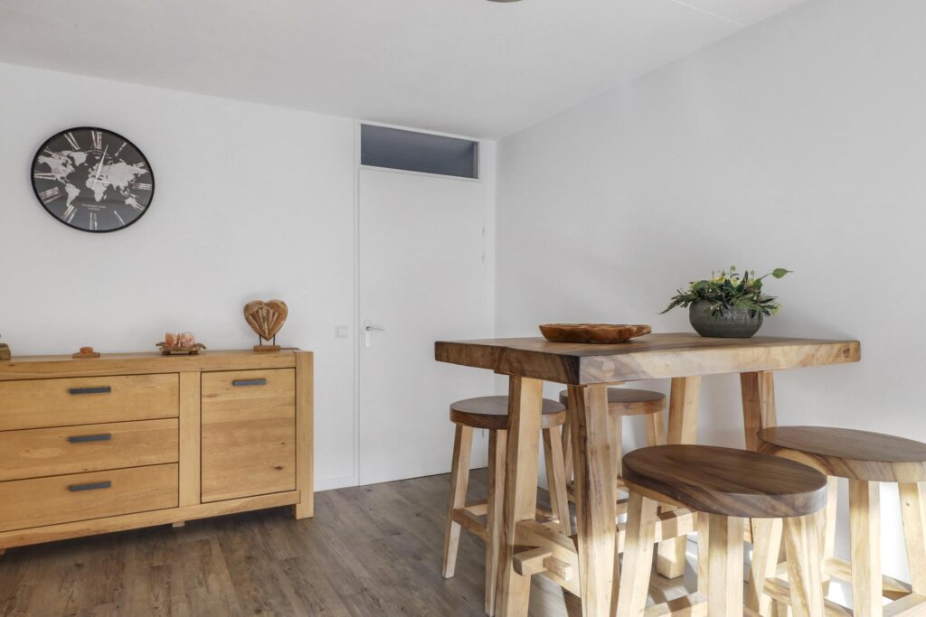 We mogen wel stellen dat deze woning veel meer te bieden heeft dan de gemiddelde tussenwoning in de wijk. Zowel de royale aanbouw als de maximaal brede dakkapel maken de woning niet alleen flink groter, maar het geeft ook veel meer wooncomfort. Je hoeft hier niet na te denken of dat die grote hoekbank, die je altijd al hebt willen hebben, hier wel past. Of die gezellige, lange eettafel waar je heerlijk met familie en vrienden uitgebreid kunt tafelen. Vloerverwarming komen we in de wijk (nog) bijna niet tegen terwijl dat hier al wel aanwezig is en voor een hoog comfortgehalte zorgt. De keuken is luxe uitgevoerd en zelfs in een U-opstelling geplaatst waardoor je meer aanrecht en kastruimte hebt.